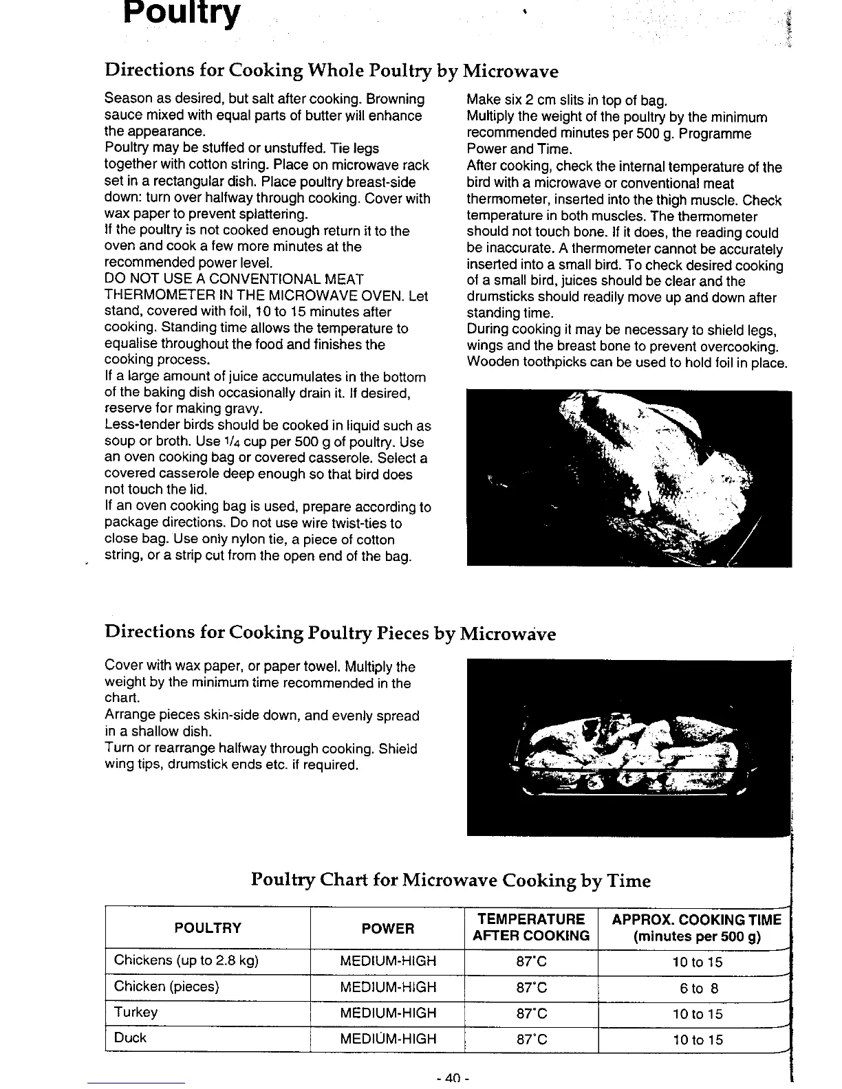 Panasonic NN-6803 - Poultry Cooking; Cooking Whole Poultry by Microwave; Cooking Poultry Pieces; Poultry Cooking Time Chart