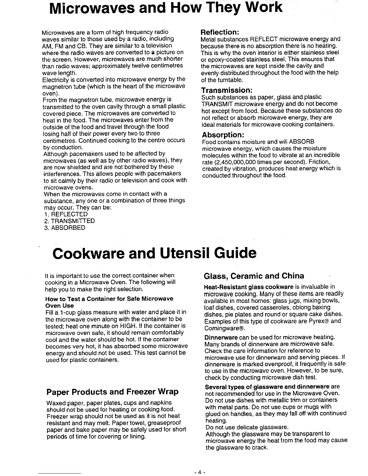 Panasonic NN-6853 - Understanding Microwave Operation; How Microwaves Work; Cookware and Utensil Guide; Utensil Testing Procedure