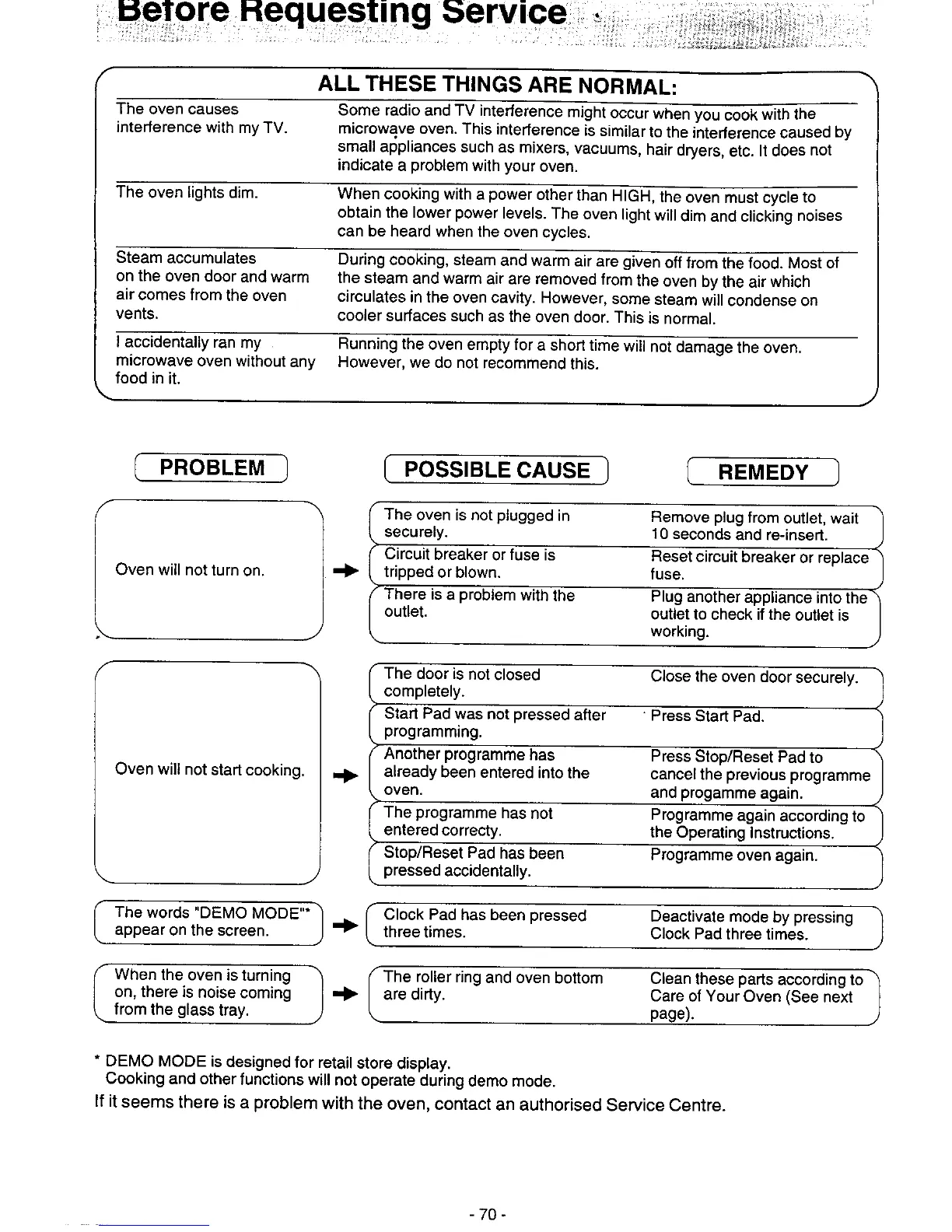 Panasonic NN-6853 - Before Requesting Service; Normal Oven Occurrences Explained; Troubleshooting Common Problems