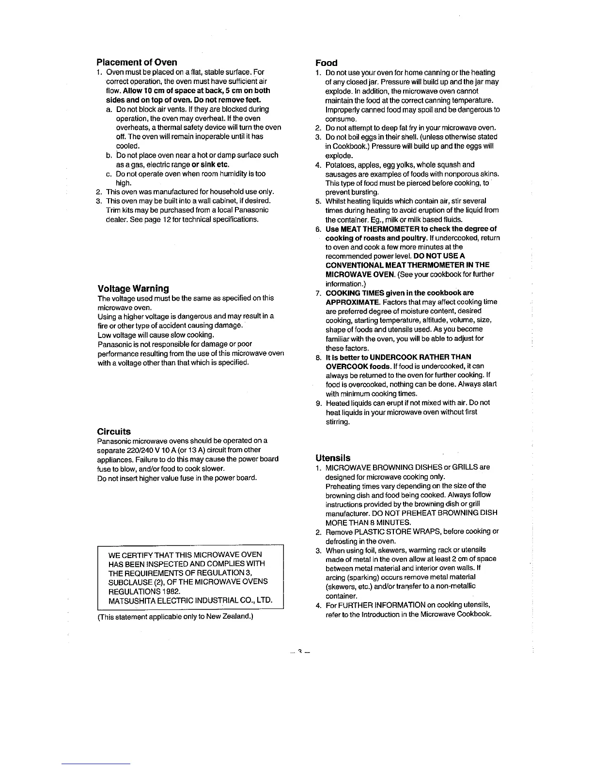 Panasonic NN-7808 - Oven Placement and Voltage; Placement Guidelines; Voltage Warning; Food and Utensil Usage