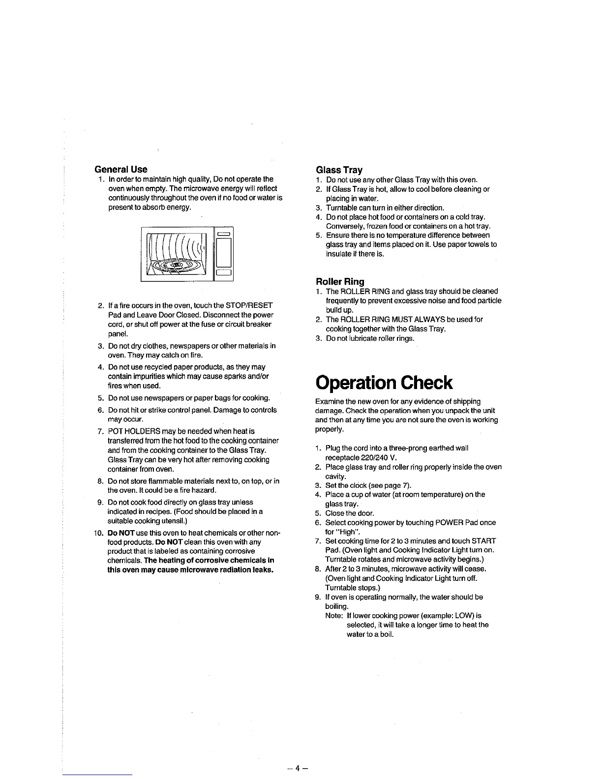 Panasonic NN-7808 - General Oven Usage; General Use Precautions; Tray and Roller Ring Usage; Glass Tray Handling