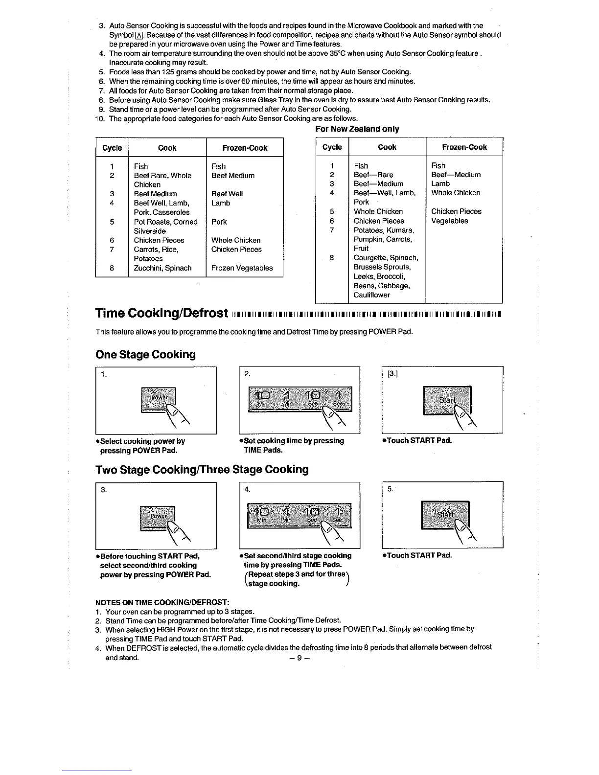 Panasonic NN-7808 - Auto Sensor Cooking Details; Auto Sensor Cooking Notes; Food Categories for Auto Sensor Cooking; Time Cooking and Defrost