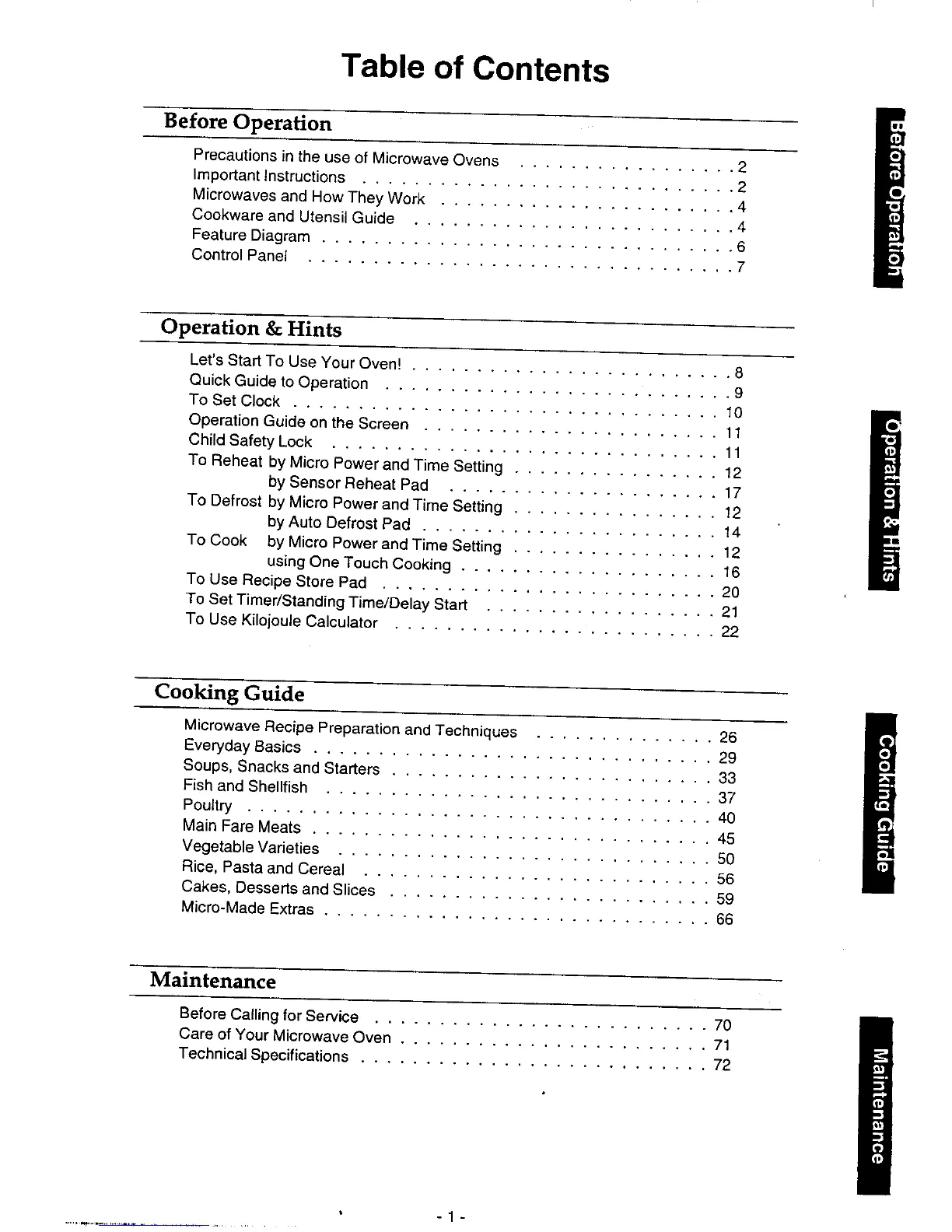 Panasonic NN-7853 - Table of Contents