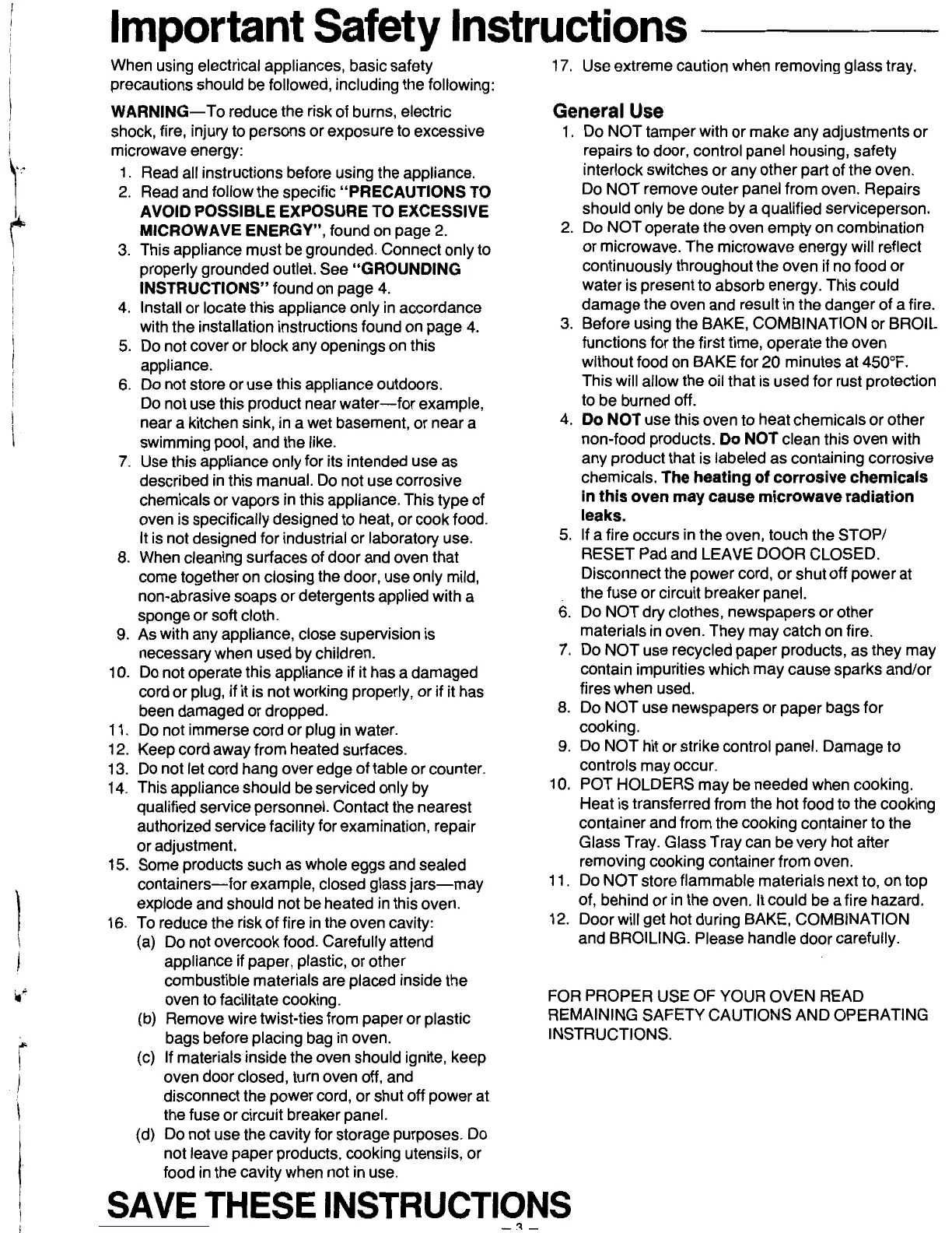 Panasonic NN-8501V - General Safety Instructions; Operational Safety Guidelines