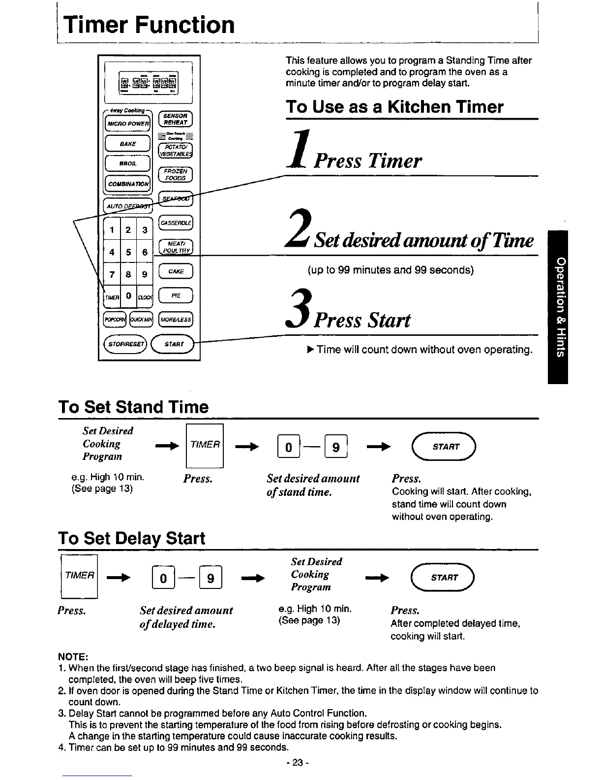 Panasonic NN-9804 - Timer Function; To Use as a Kitchen Timer; To Set Stand Time; To Set Delay Start