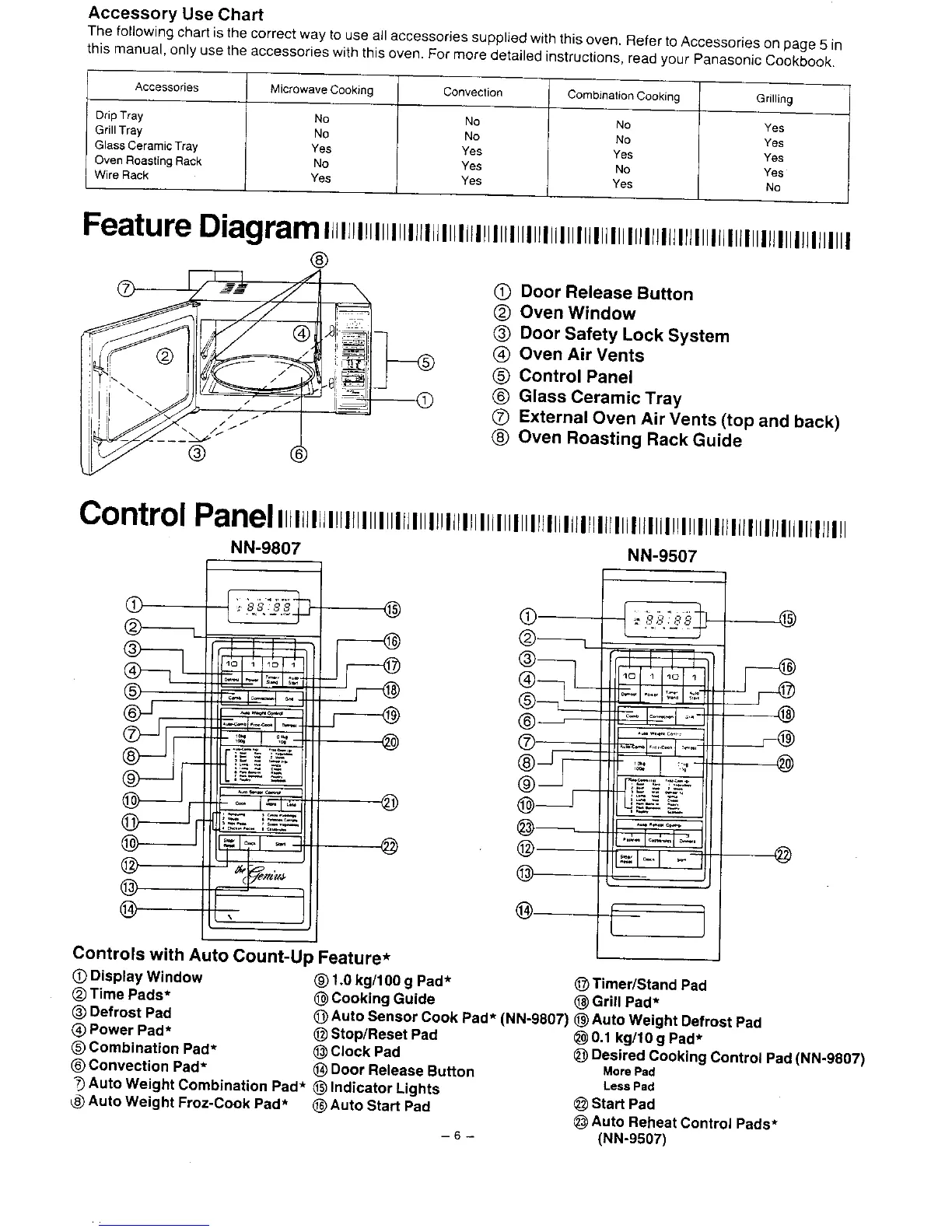Panasonic NN-9807 - Feature Diagram and Control Panel; Oven Feature Identification; Control Panel Overview