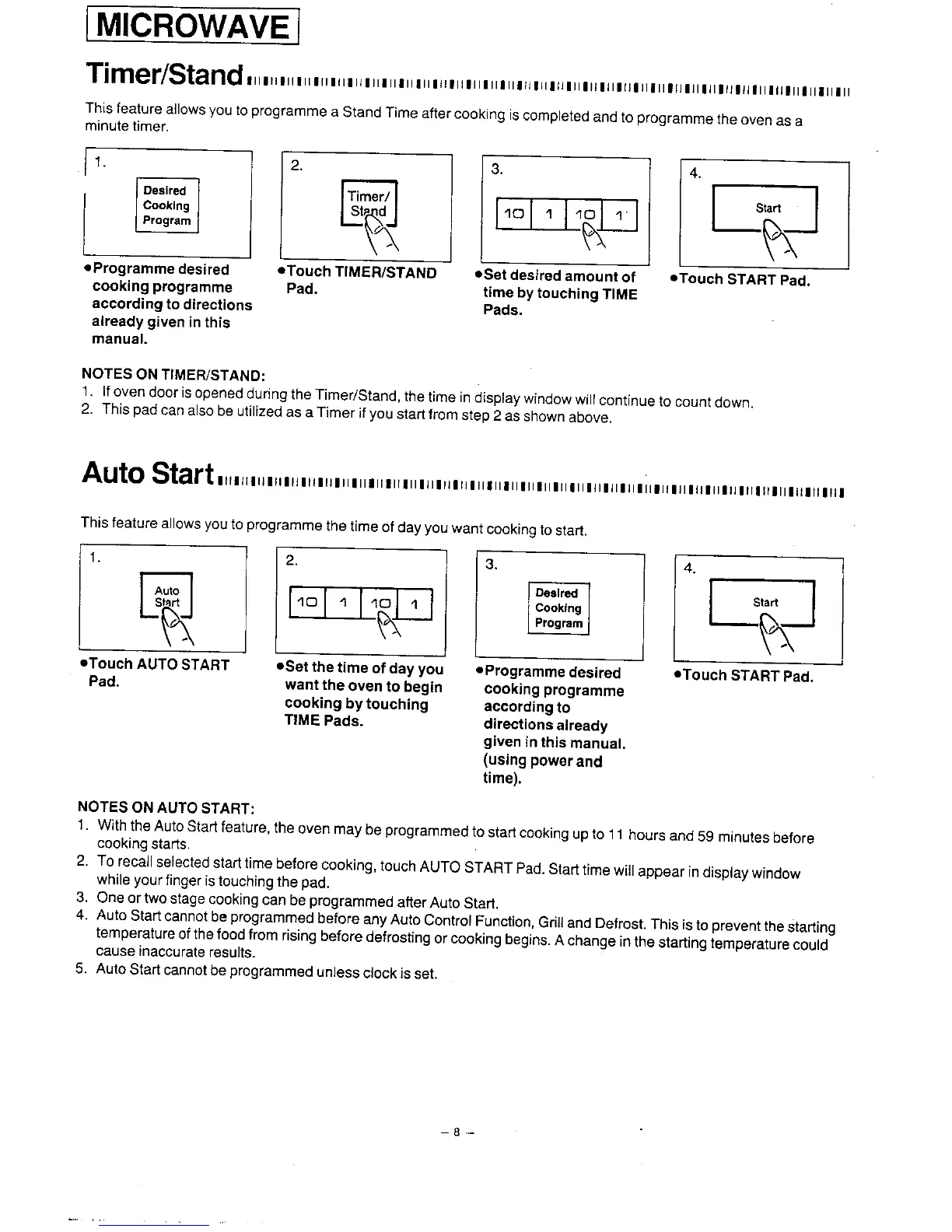 Panasonic NN-9807 - Advanced Cooking Features; Timer;Stand Feature; Auto Start Programming