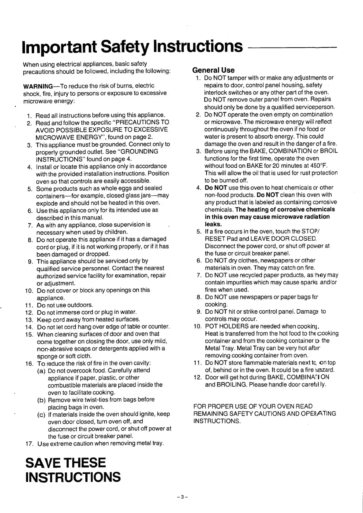 Panasonic NN-9850 - Important Safety Instructions