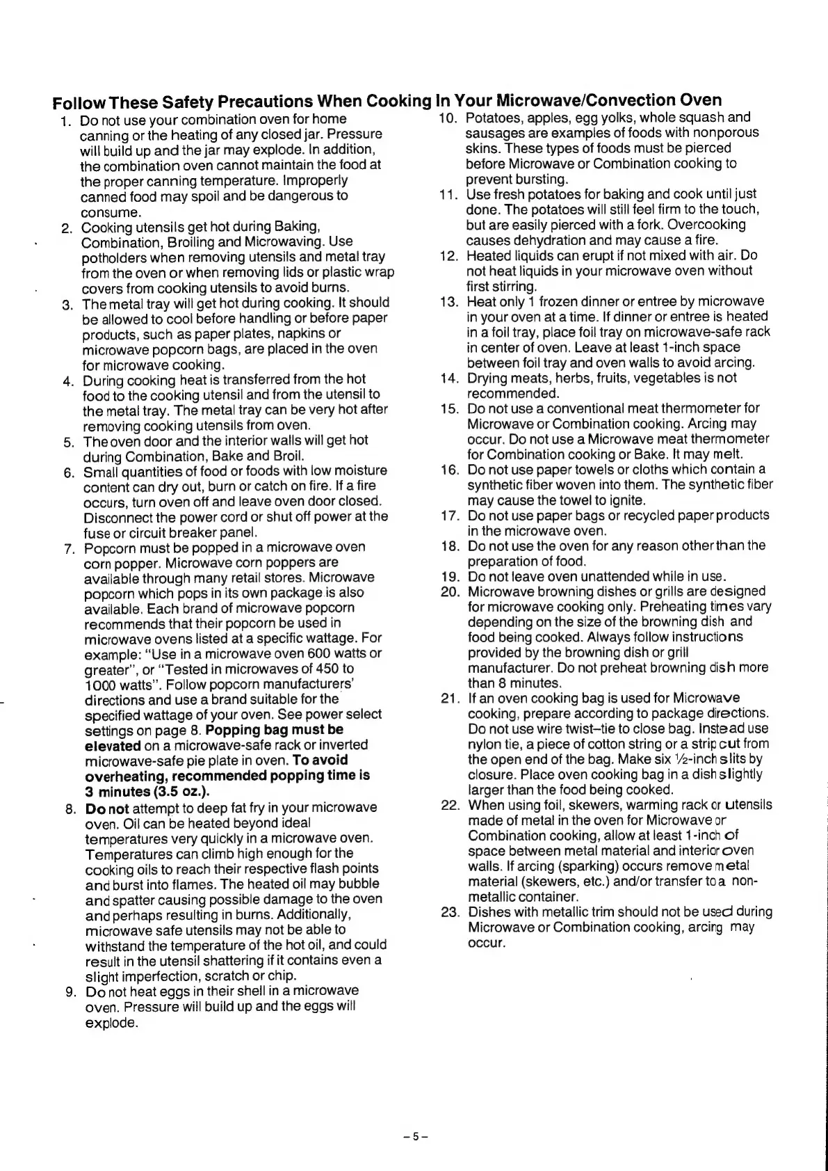 Panasonic NN-9850 - Safety Precautions When Cooking