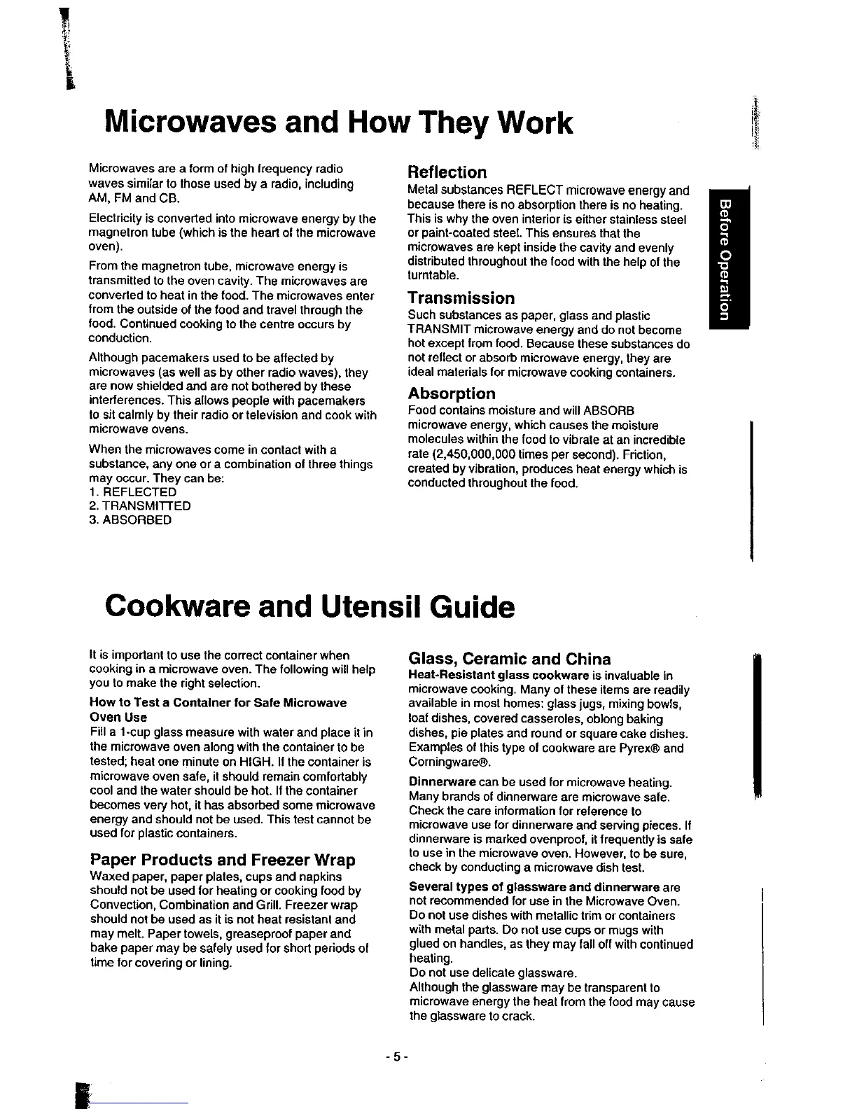 Panasonic NN-9853 - Microvawes and How They Work; Cookware and Utensil Guide; Reflection; Transmission