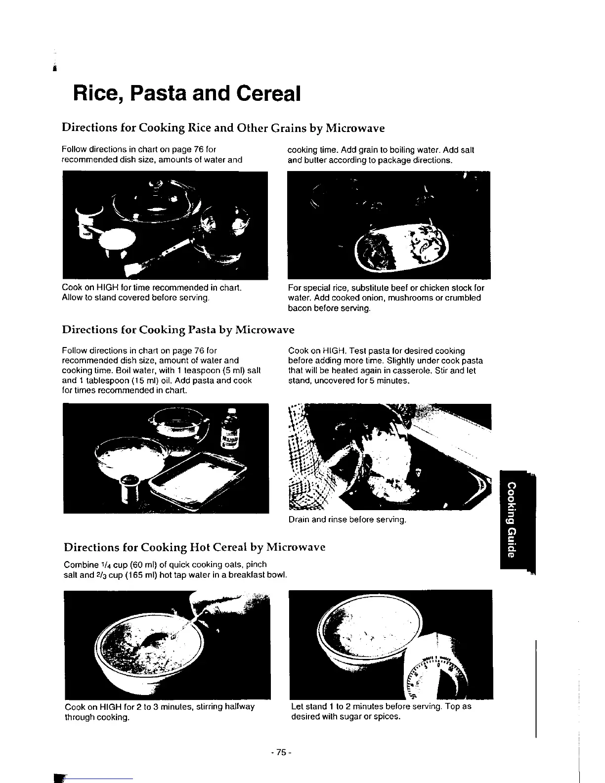 Panasonic NN-9853 - Rice, Pasta and Cereal; Cooking Rice and Other Grains by Microwave; Cooking Pasta by Microwave; Cookig Hot Cereal by Microwave