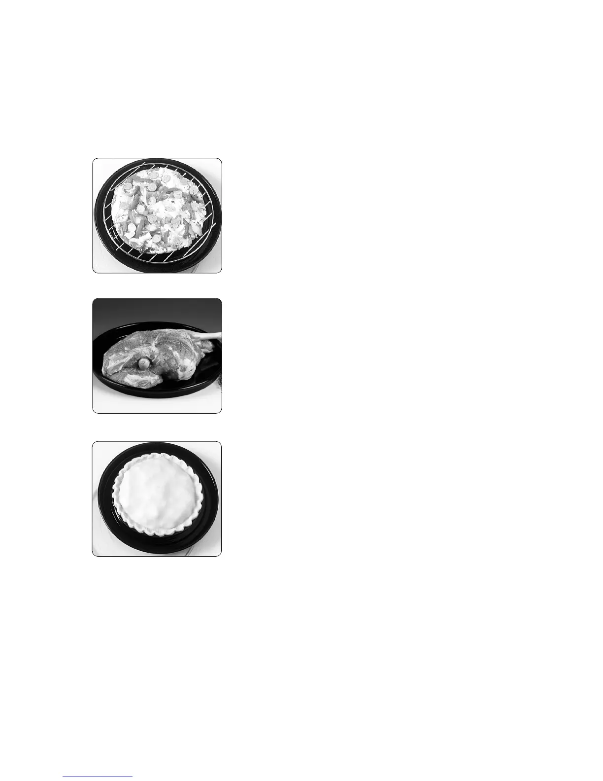 tray on the glass turntable. Heatproof dishes of food should be