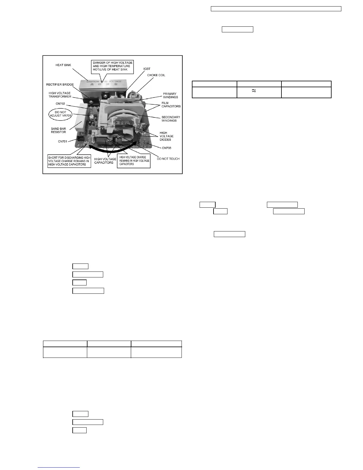from the wall outlet, unplug the 2 pin H.V. connector CN703