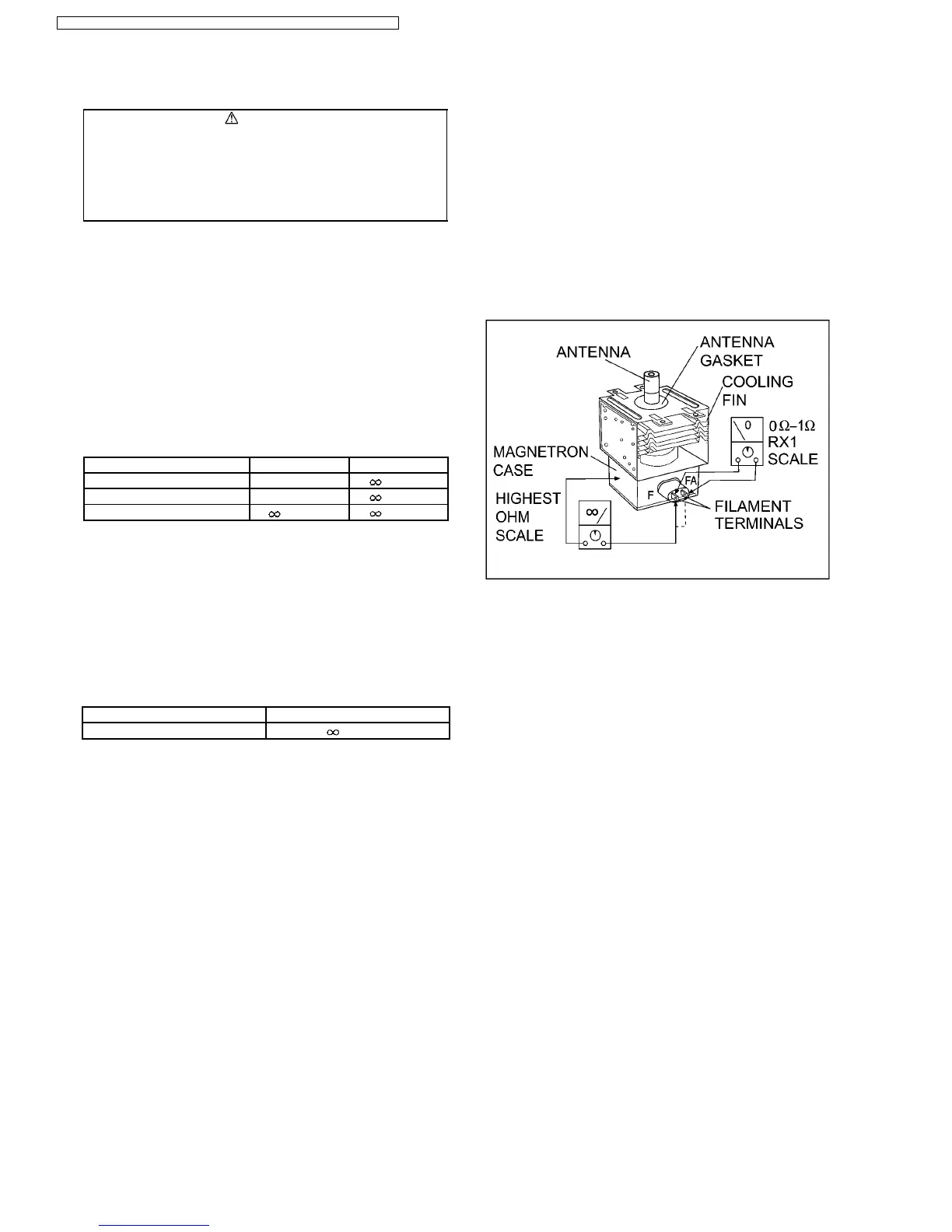 2. A continuity check across magnetron filament terminals