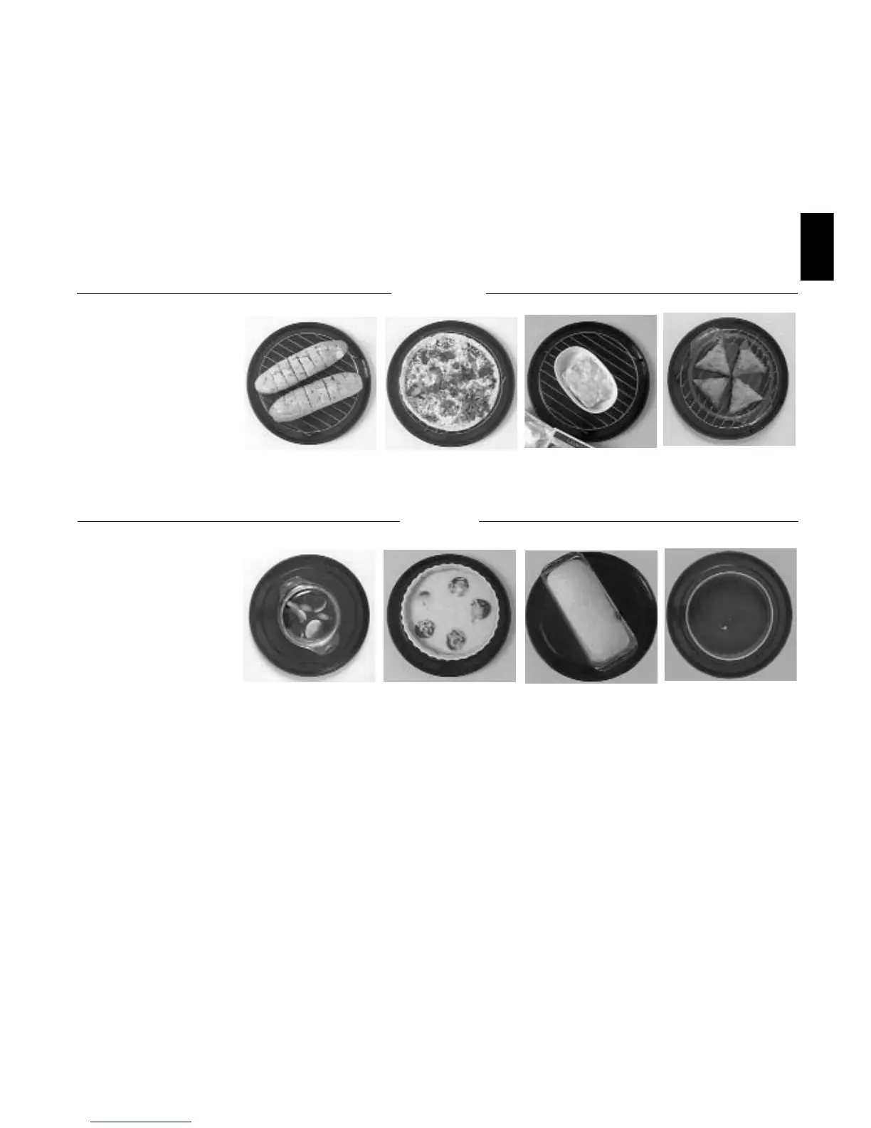 used. If the food you wish to cook/reheat is not shown below, find a similar type of food and use the accessories as described.