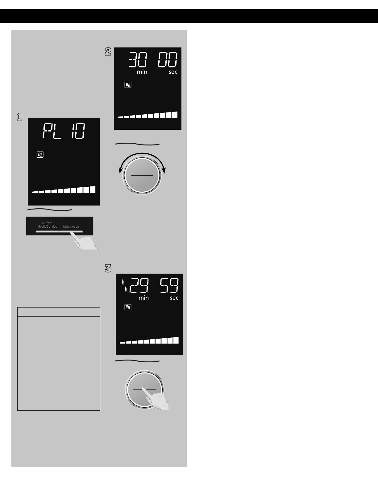 dial. PL10 has max. cooking