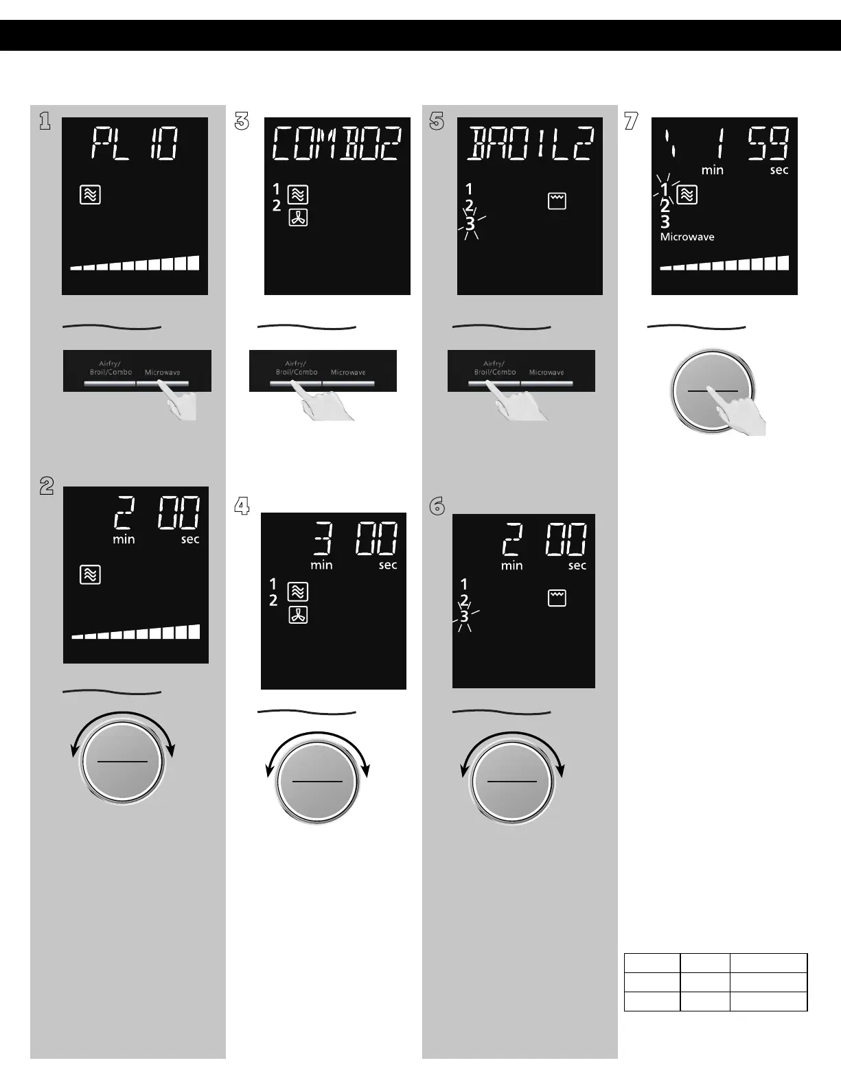 3 minutes and [Broil 2 (Low)] 2 minutes.)