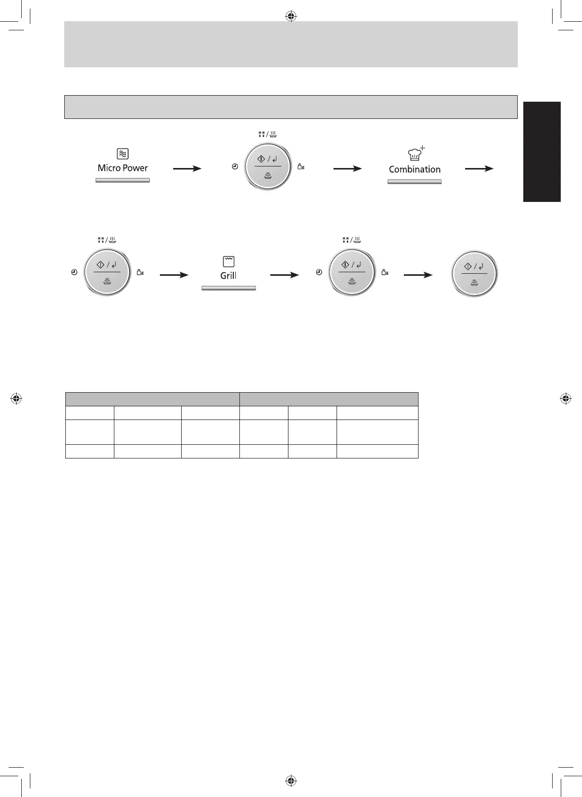 E.g.: Continually set [800 W] 2 minutes, [Combi 1] 3 minutes and [Grill 1] 2 minutes.