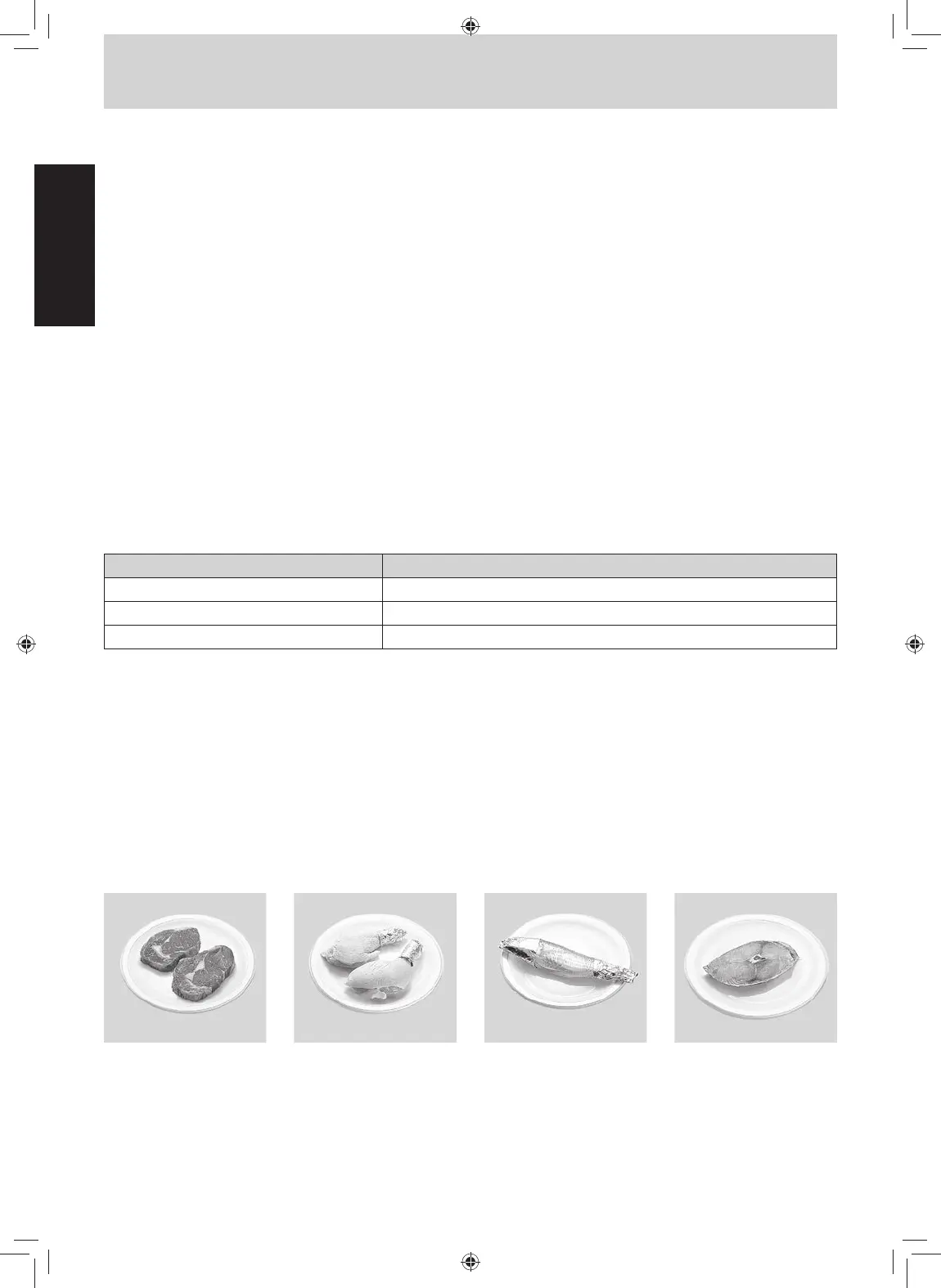after setting. The foods listed in the below table are the most suitable for using defrost function. The minimize