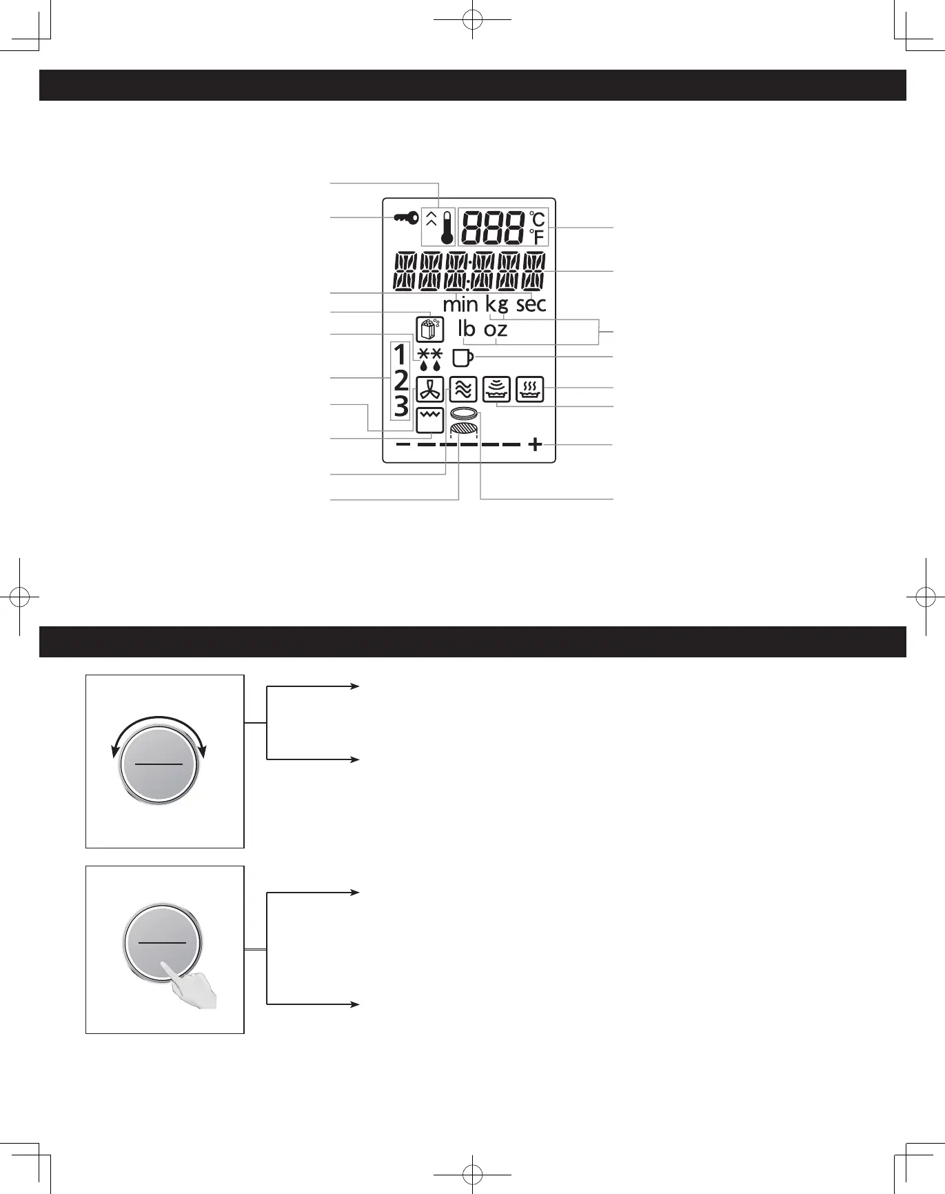 After selecting a manual cooking mode, enter time by turning the dial. Use the dial for