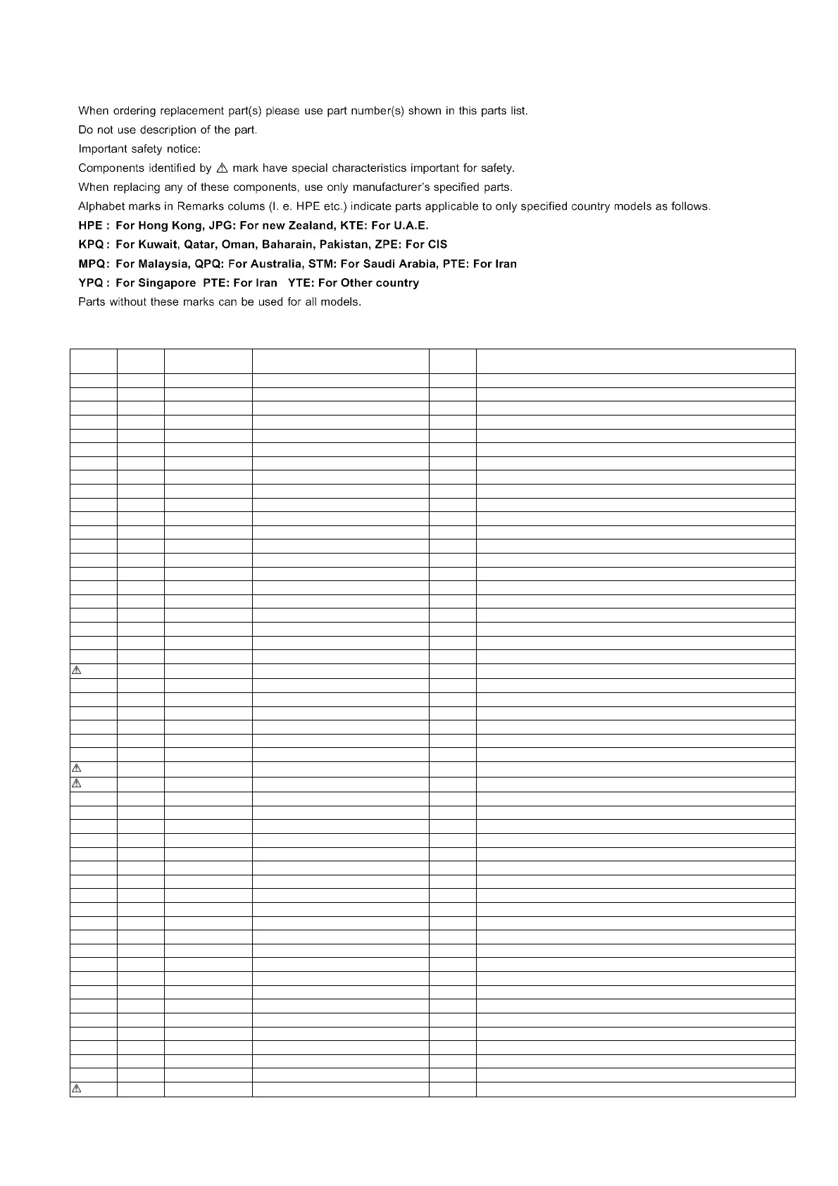 Part No. Part Name & Description Pcs/Set Remarks