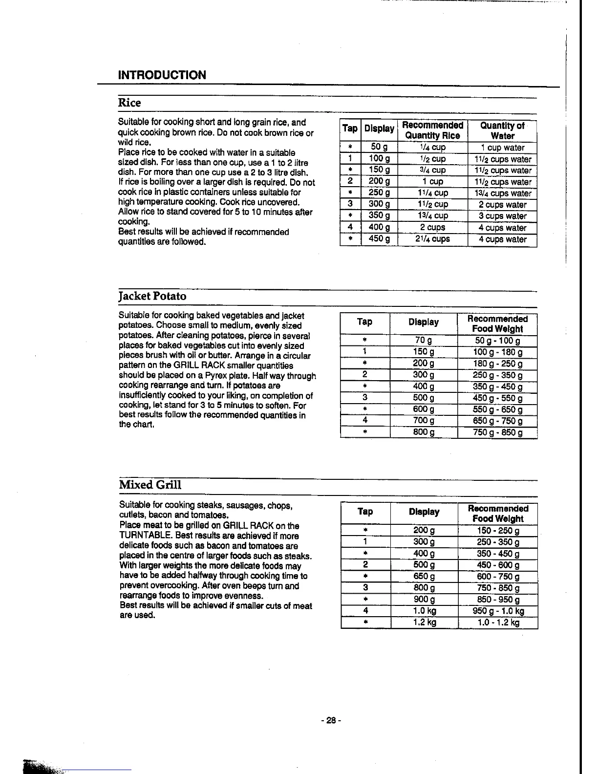 Panasonic NN-K652 - Rice; Jacket Potato; Mixed Grill