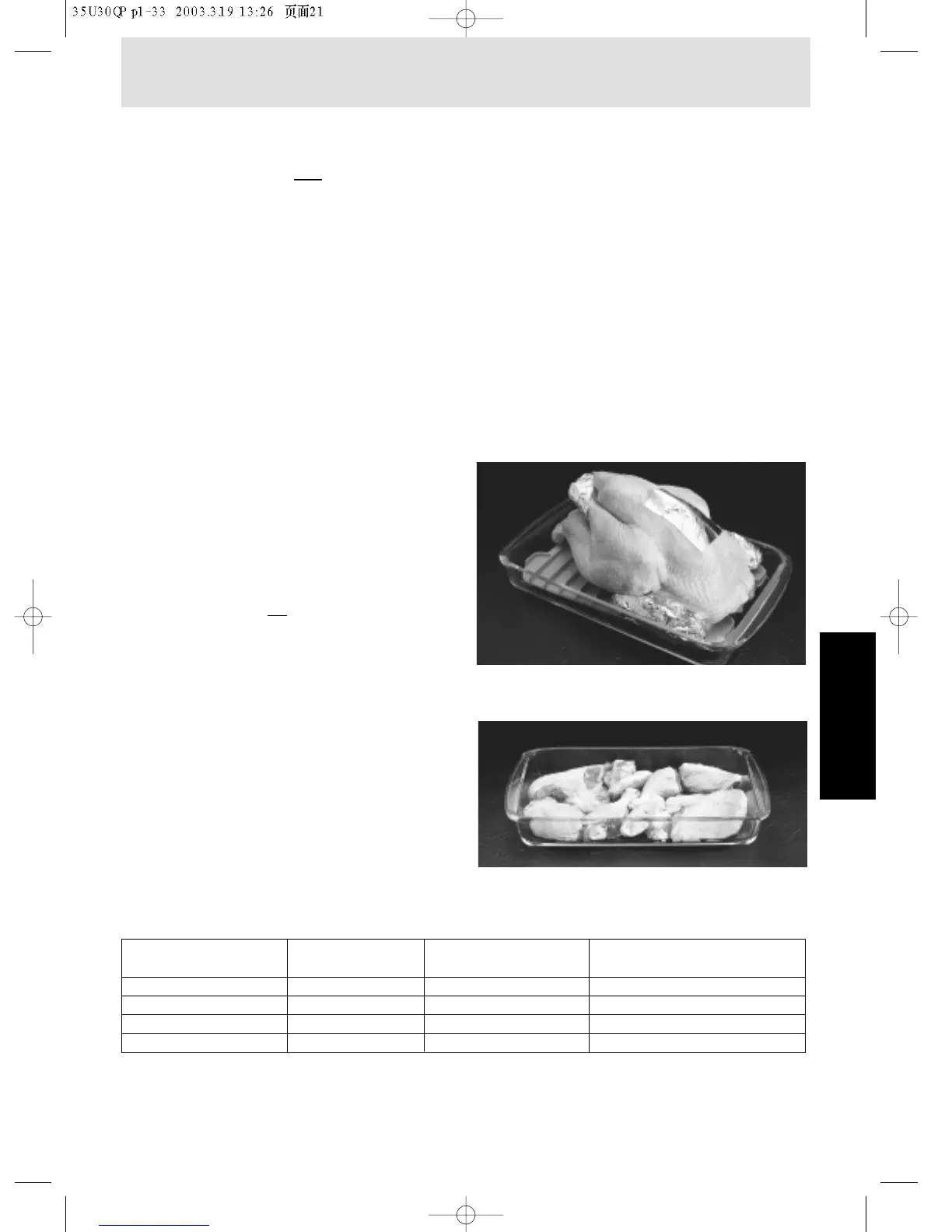 Poultry Chart for Microwave Cooking by Time
