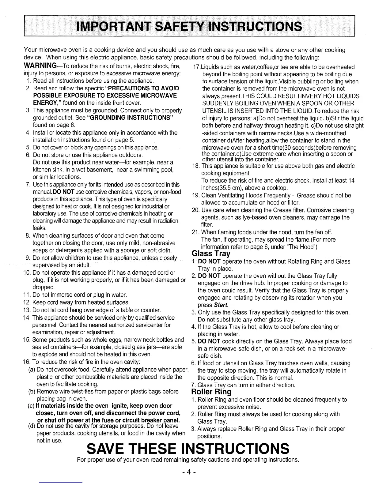 Panasonic NN-S244BL - Important Safety Instructions; General Usage Safety Rules