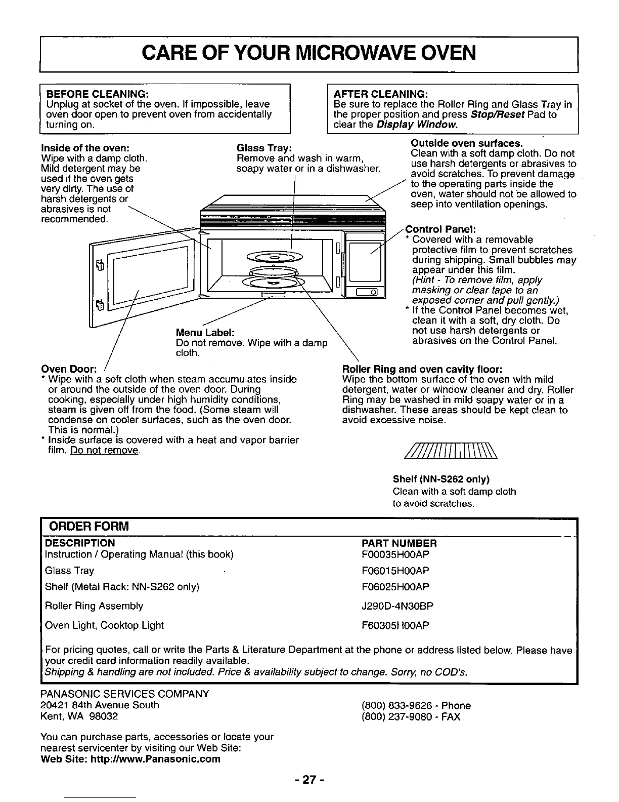 Panasonic NN-S262BF - Microwave Oven Care and Cleaning; Cleaning Procedures