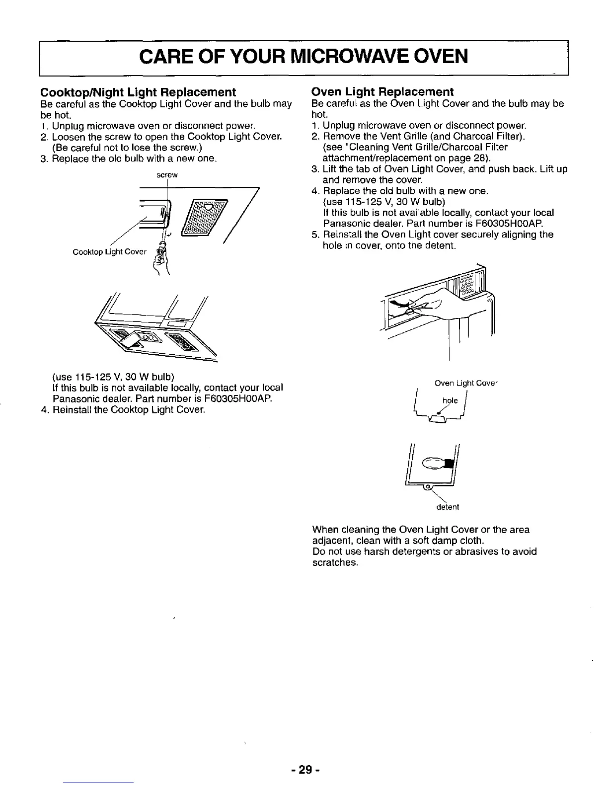 Panasonic NN-S262BF - Light Replacement; Cooktop Light Replacement; Oven Light Replacement