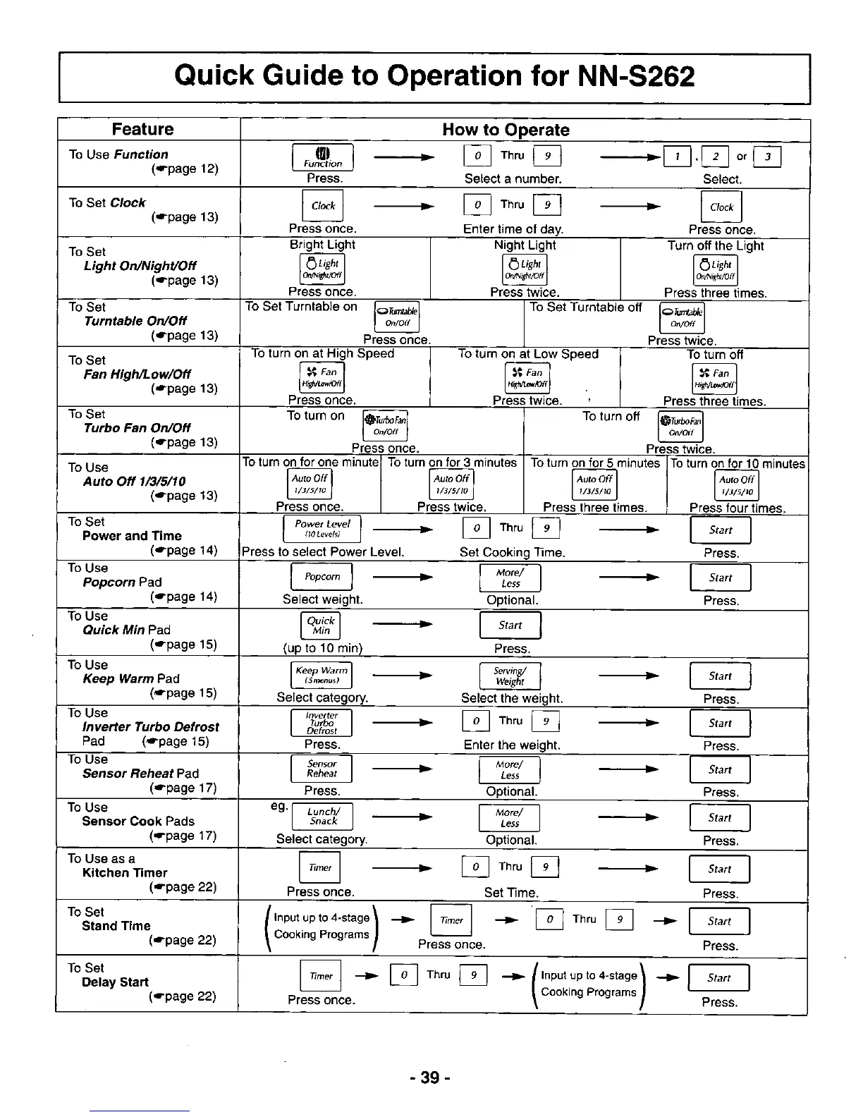 Panasonic NN-S262BF - Quick Guide to Operation for NN-S262