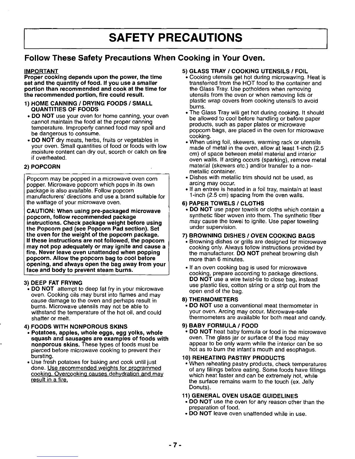Panasonic NN-S262BF - Safety Precautions; Food and Material Safety Guidelines