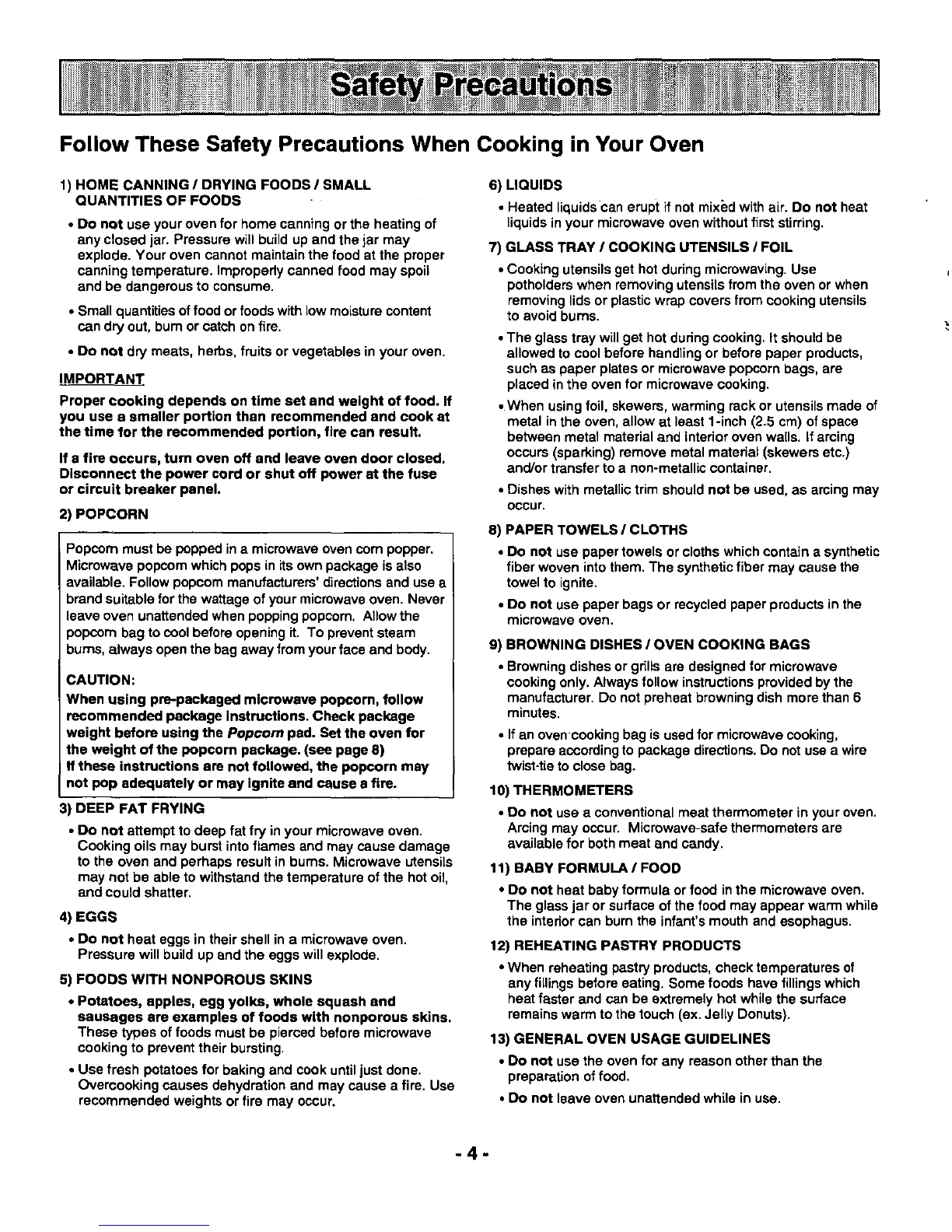 Panasonic NN-S548BA - Safety Precautions During Cooking