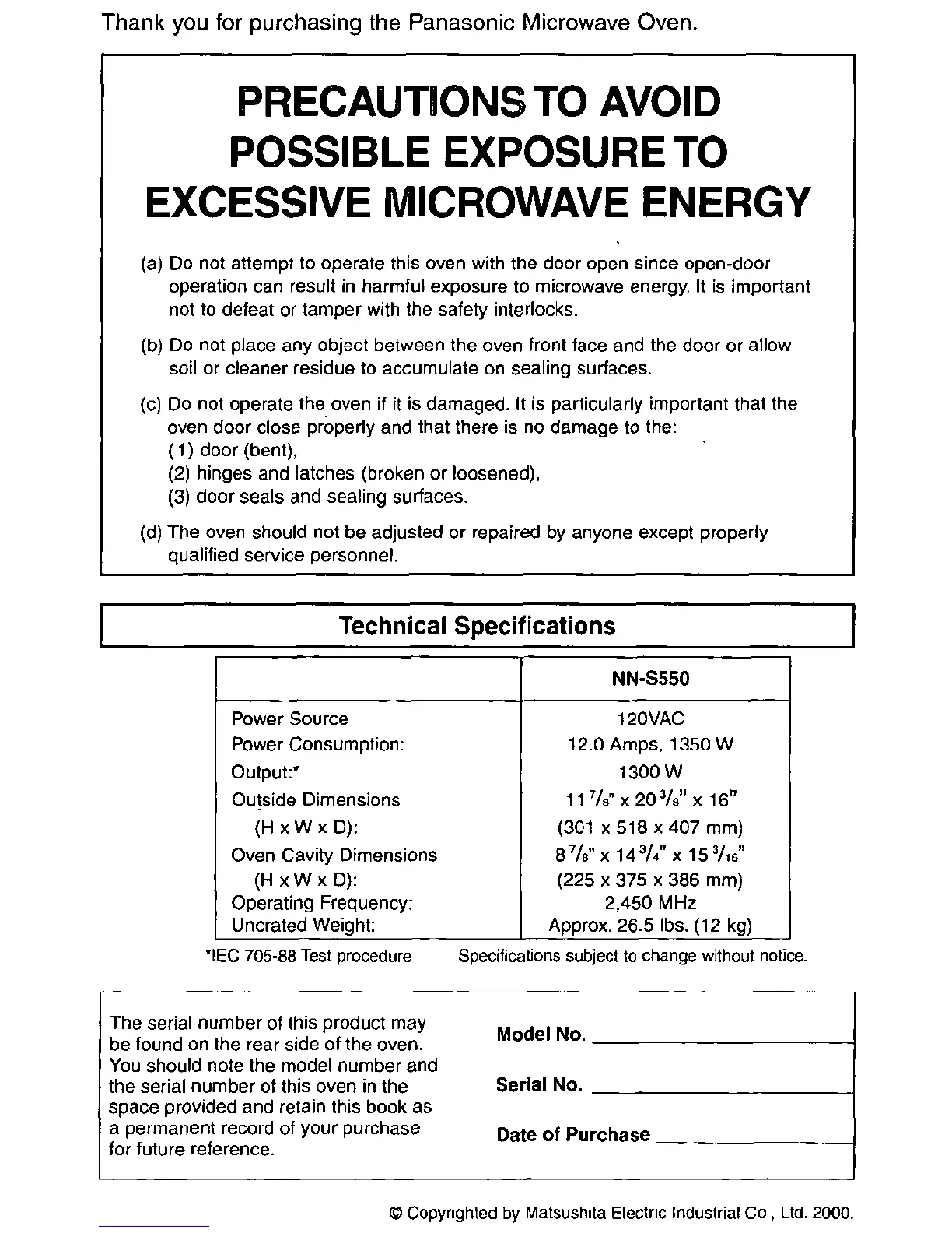 Panasonic NN-S550BF - Page 2