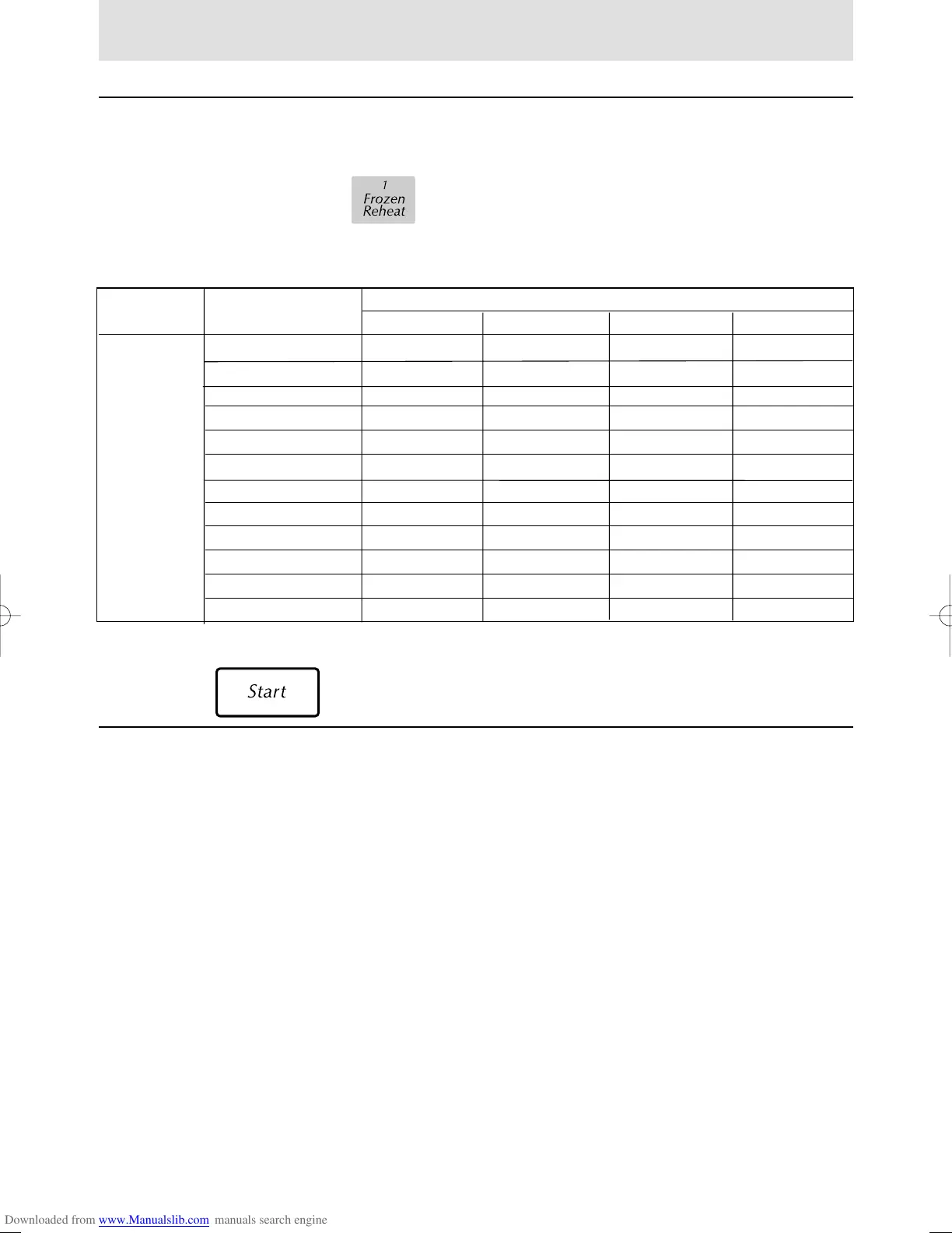 Auto Cook 1. Frozen Reheat 250 g 450 g 650 g 850 g