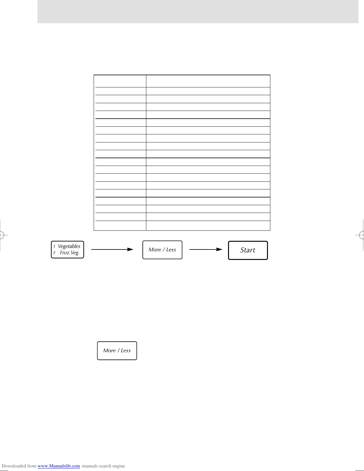 eg. Press once for 1. Vegetable