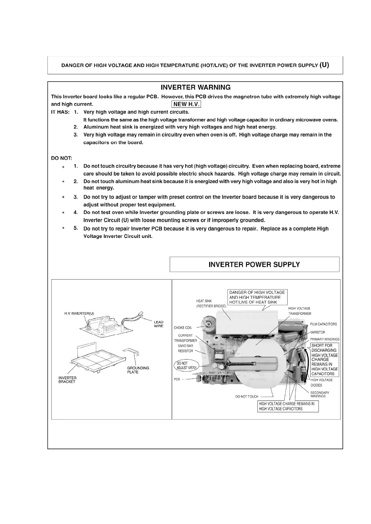 Panasonic NN-S573MF - Inverter Power Supply Information; High Voltage and Temperature Dangers; Inverter Power Supply Diagram