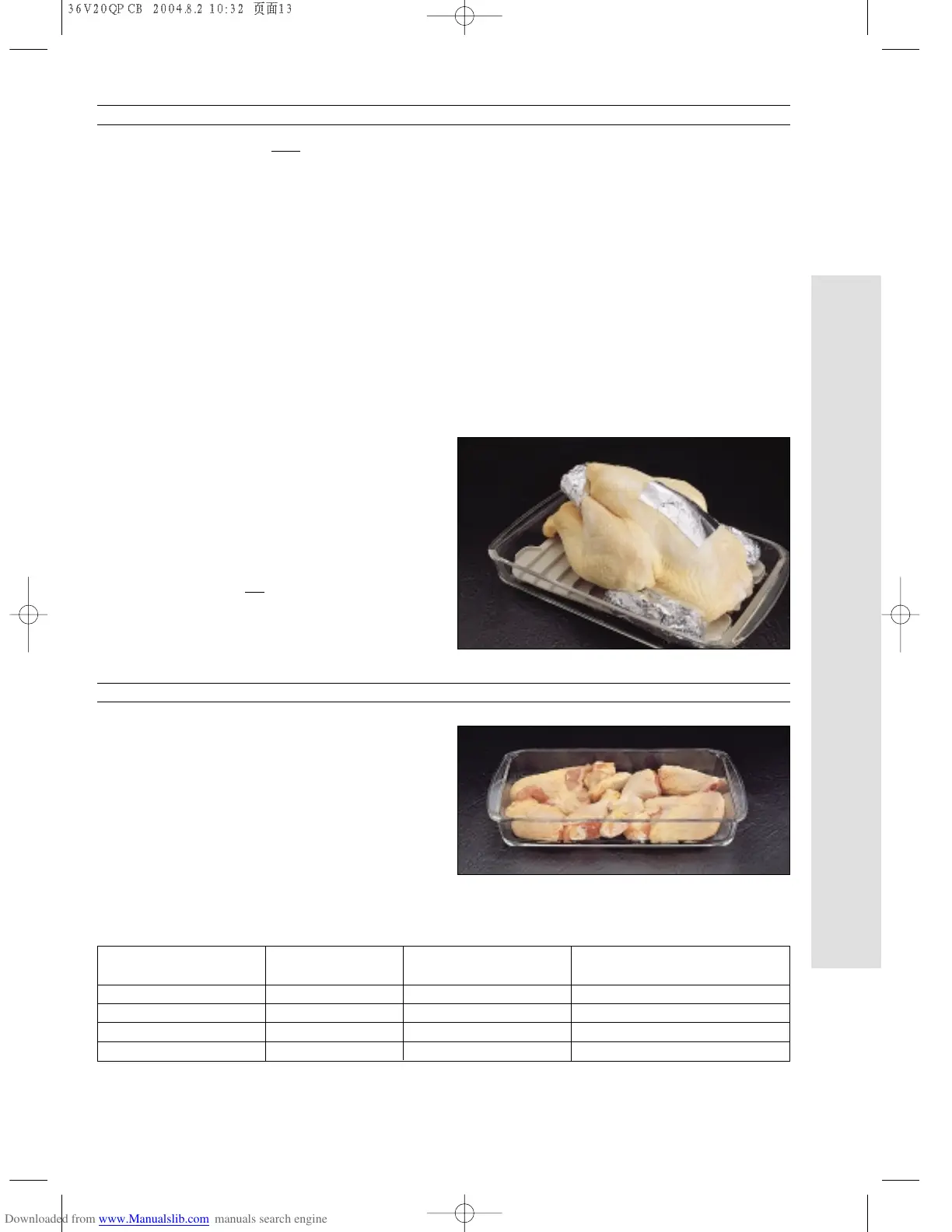 Chickens (up to 2 kg) P7 87°C 10 to 15