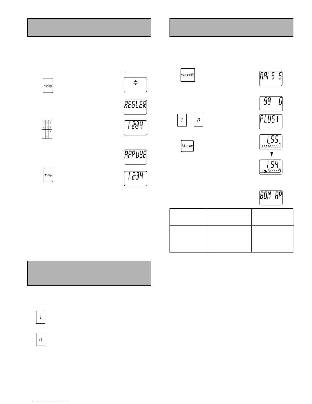 Lors de l’utilisation de la touche pour maïs soufflé, il est