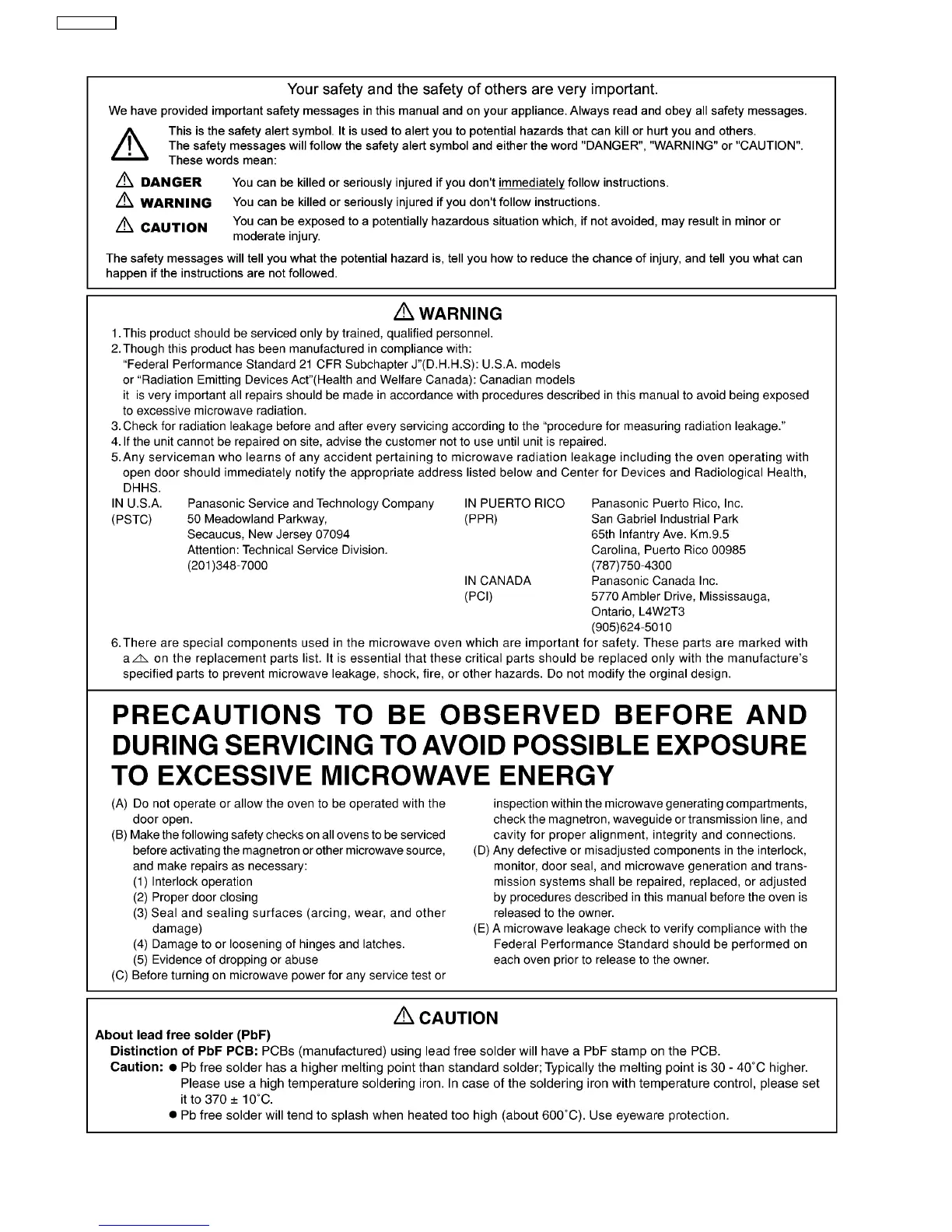 Panasonic NN-SD297SR - General Safety Messages; Microwave Exposure Precautions