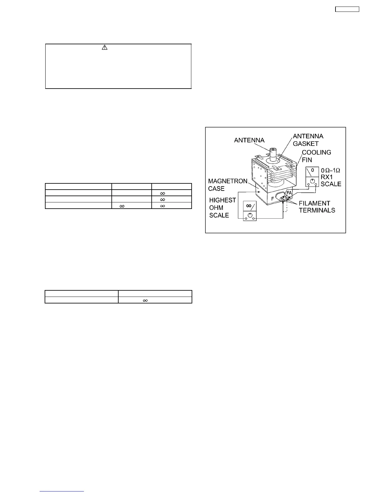 2. A continuity check across magnetron filament terminals