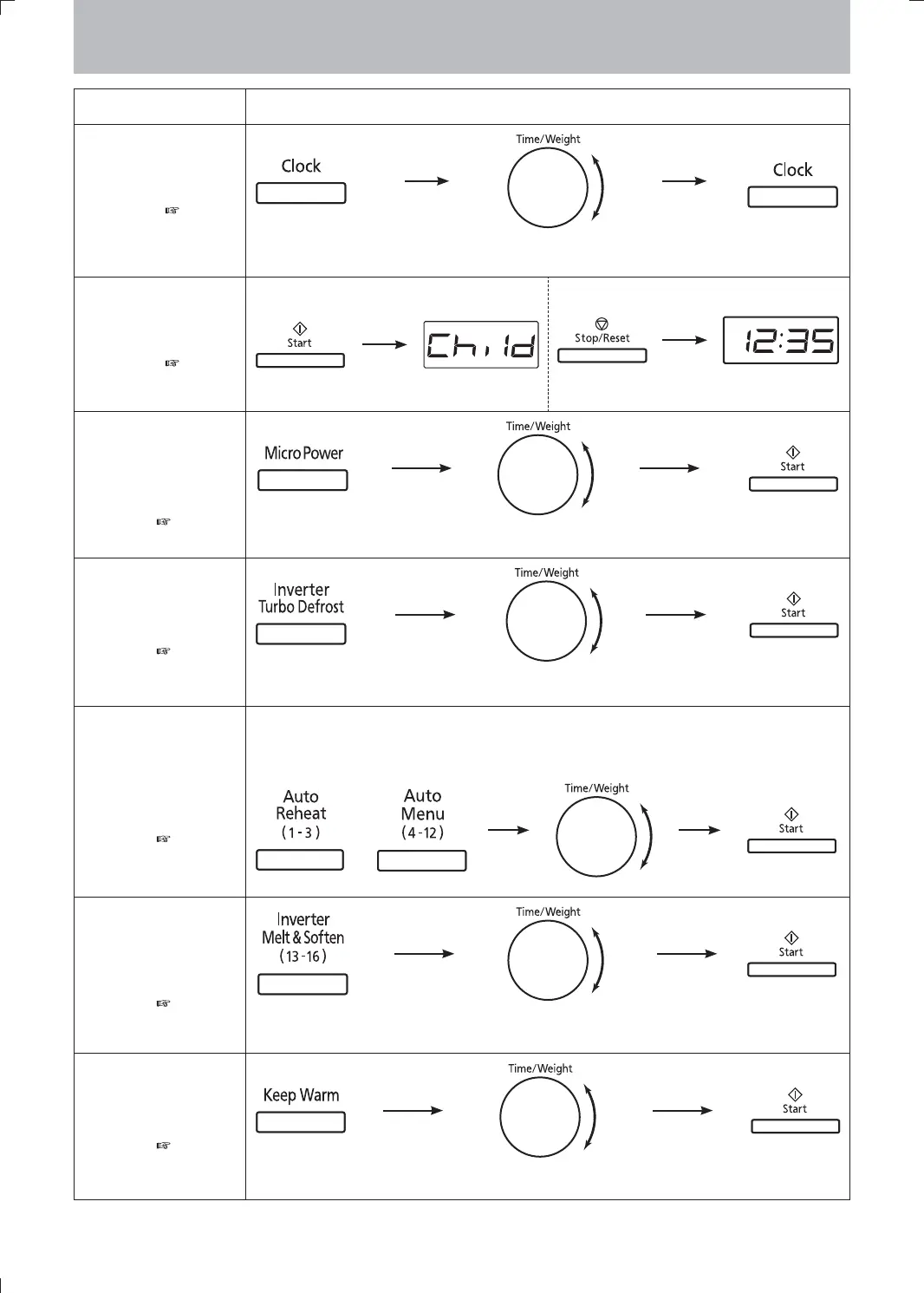 Panasonic NN-SD351M - Quick Guide to Operation; Setting Clock and Safety Lock; Manual Cooking and Defrosting; Auto Cook and Reheat
