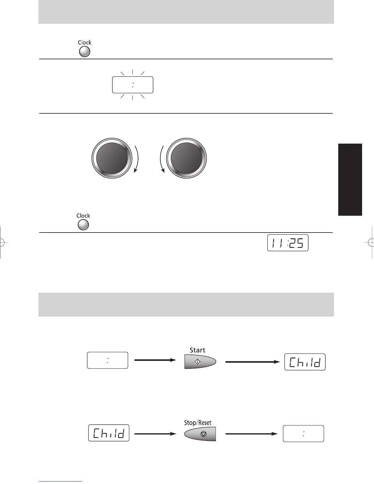 You can set Child Safety Lock when colon or time of day is displayed.