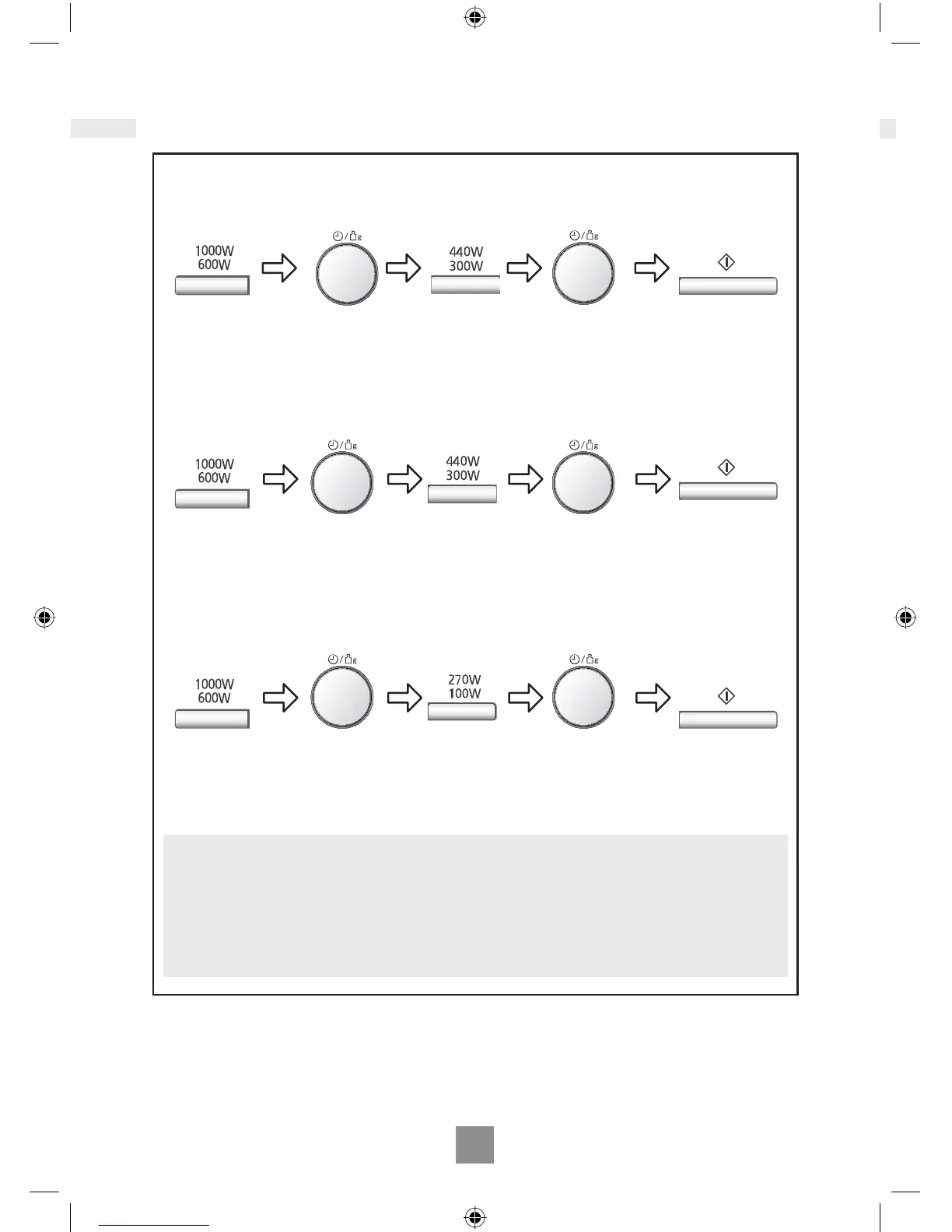 Example: To cook at 1000 W for 2 minutes and cook food at 300 W for 3 minutes.