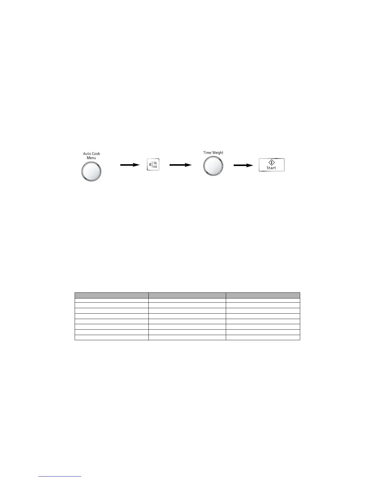This feature allows you to cook or reheat foods by setting the weight only. The oven determines the Microwave power level and then the cooking