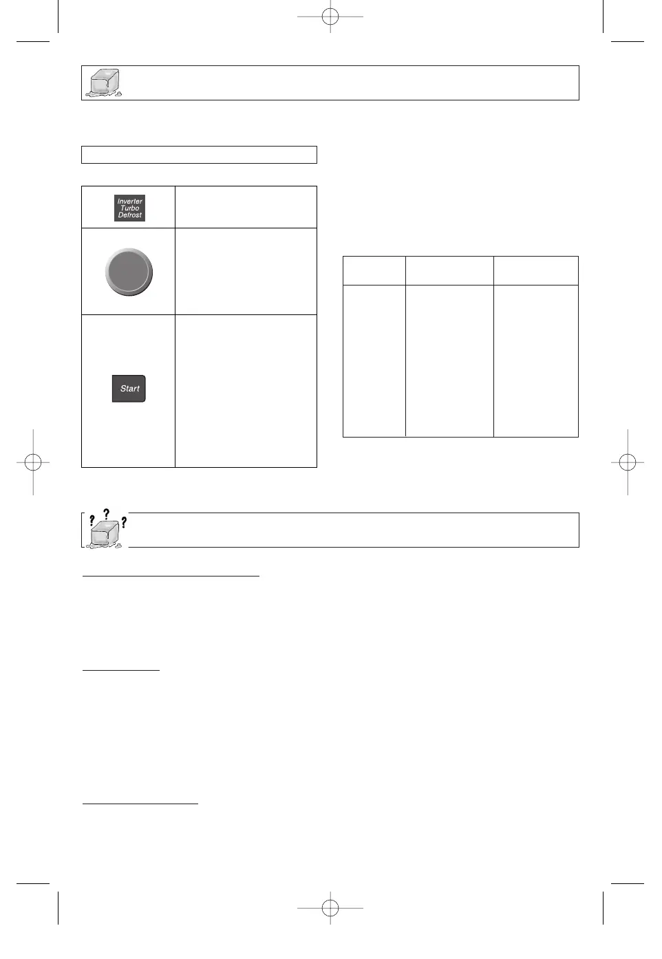 1. Large items may be icy in the centre. Defrosting will complete during STANDING TIME.