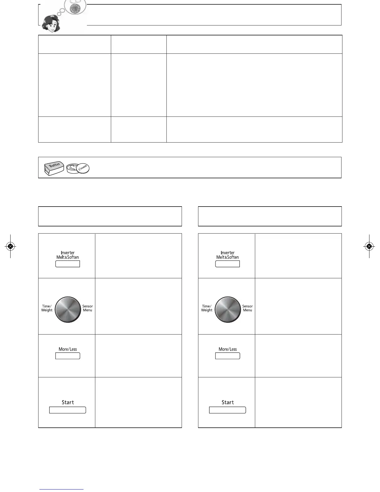This feature allows you to melt or soften food listed in the chart on Page 20.