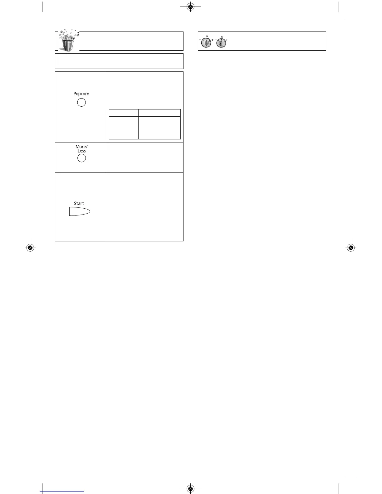 2 pulsaciones = Menos (Reduce aproxi-