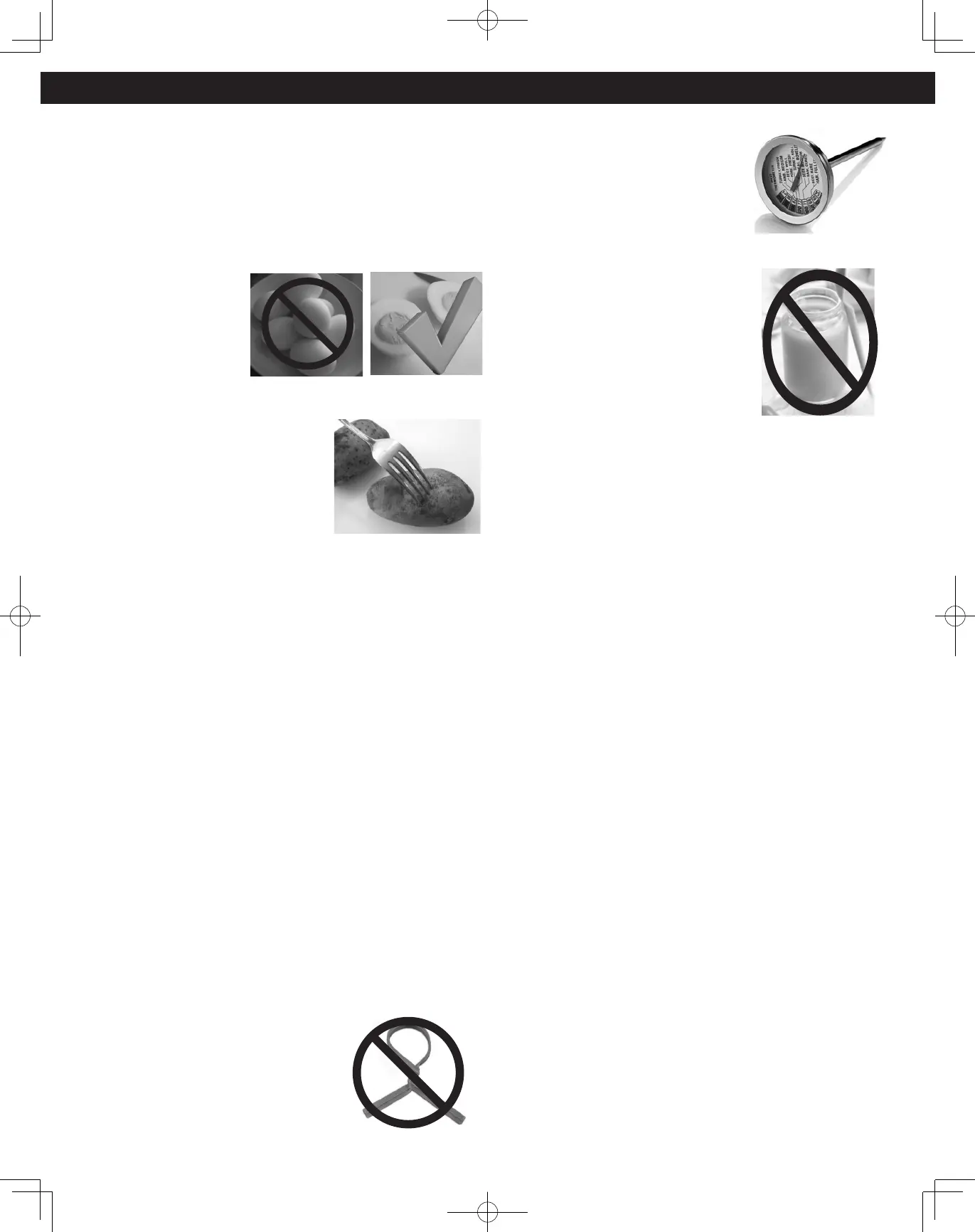 • NO COCINAR/RECALENTAR HUEVOS ENTEROS, CON O SIN CÁSCARA.