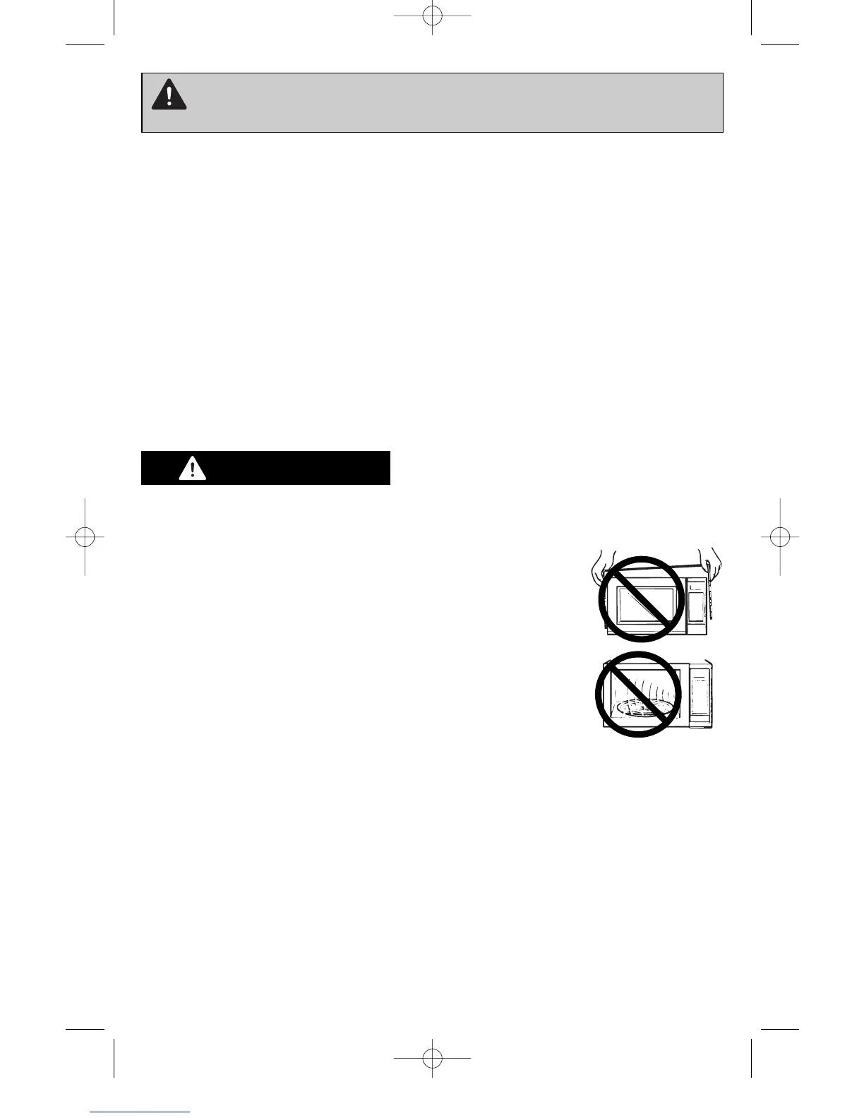 DO NOT remove outer panel from oven. Repairs must be done only by a qualified serv-